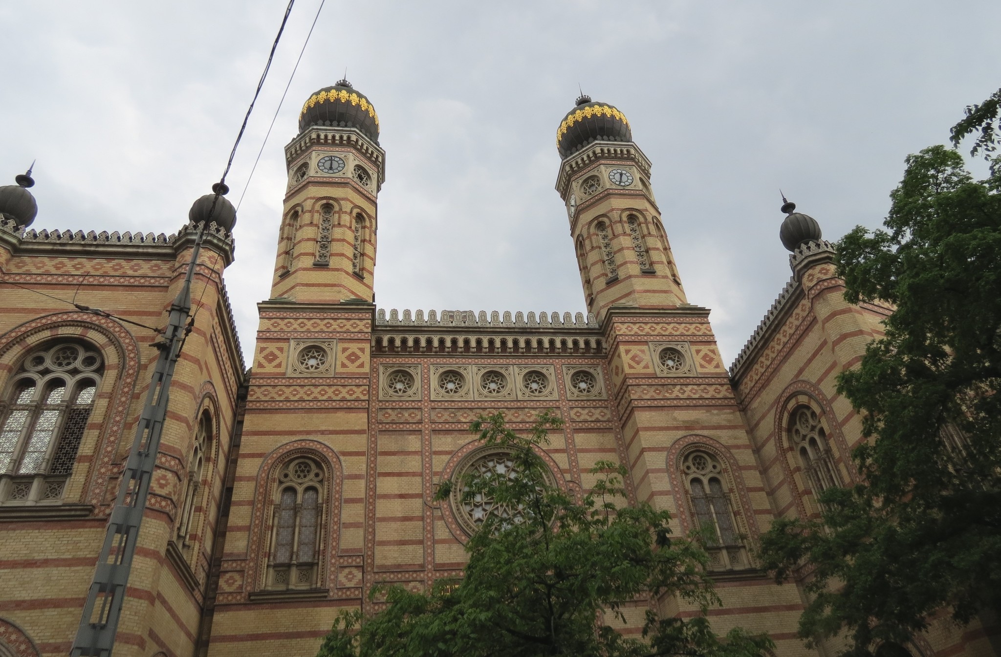 От перекрестка недалеко до самой большой в Европе синагоги, обязательное уточнение при рассказах о Будапештской достопримечательности. Еврейская община Буды была основана еще в XI столетии и веками бок о бок жили они с венграми. В XVIII веке Иосиф II издал Указ о терпимости, провозгласивший принципиальное равенство всех жителей империи перед законом. С этого момента евреям разрешалось заниматься ремеслами, земледелием, свободными профессиями, владеть мануфактурами и нанимать рабочих и даже учиться в вузах. Сооружение с двумя куполами-луковицами в псевдоисторическом мавританском стиле, призванном напомнить о ближневосточных корнях евреев, был создан венским архитектором Людвигом Фёрстером, создавшим до этого синагогу в Вене. Поэтому, уже имея опыт подобного строительства, и было построено такое большое здание. Высота башен составляет 44 м, вместимость рассчитана на 3000 человек- проектировались отдельные места для мужчин, отдельно для женщин. Еще на стадии строительства прихожане выкупали места. Синагога знаменита свои органом, на котором играли Ференц Лист и Камиль Сен-Санс.