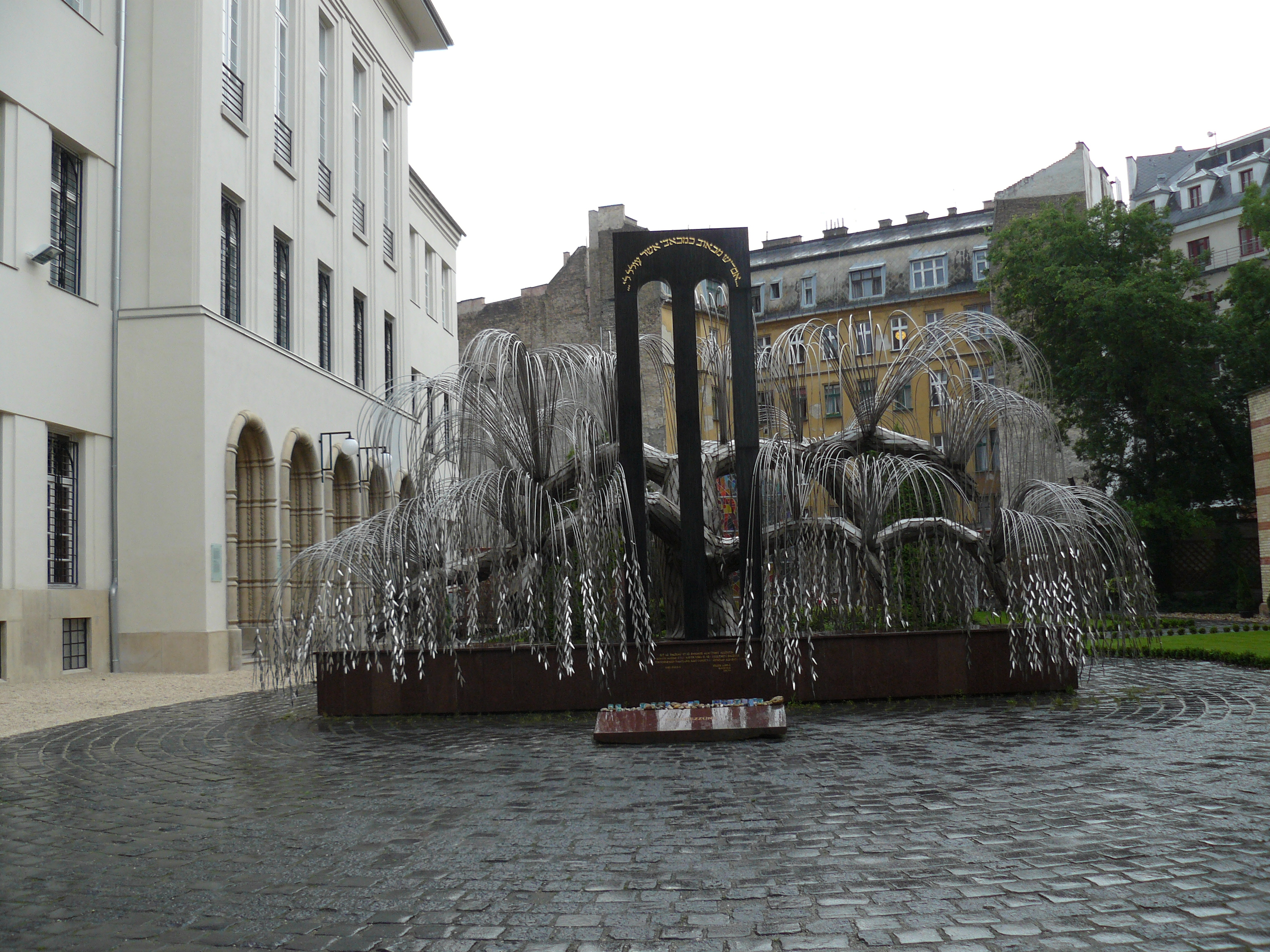 Щемящий сердце памятник во дворе синагоги - дерево с железными листочками, на котором перечислены все погибшие от рук фашистов в Венгрии евреи. Синагога и находится в центре еврейского довоенного района, и еврейского гетто во время войны. Был приказ всем евреям поселиться в желто-звездных домах этого района, помеченных для их проживания. Отсюда уводили и никто не возвращался… В Будапеште есть день памяти, называемый "День домов с жёлтой звездой".