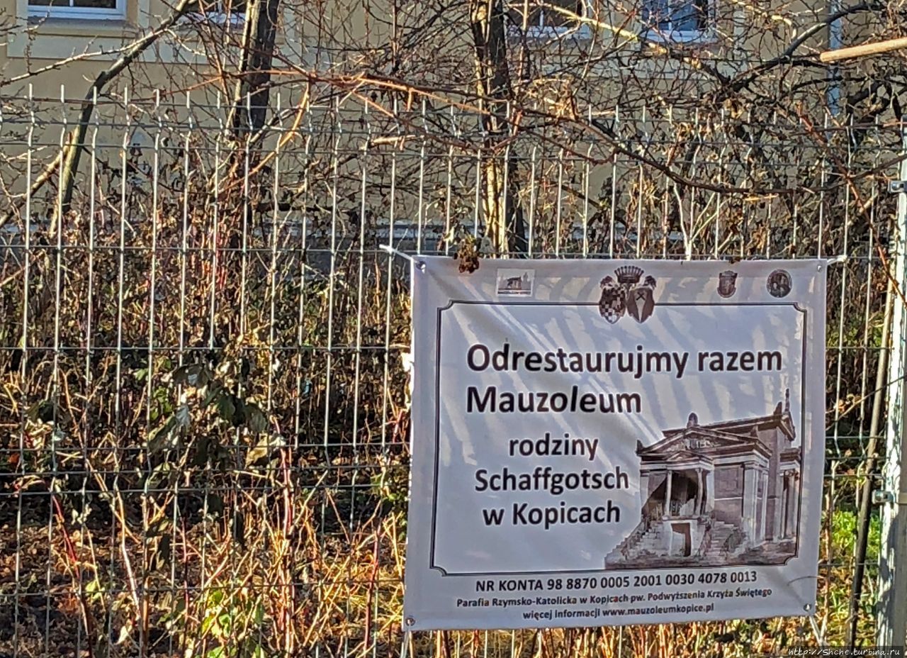 Судя по этому призыву "отреставрировать вместе", это здание — мавзолей семьи Шаффготч.