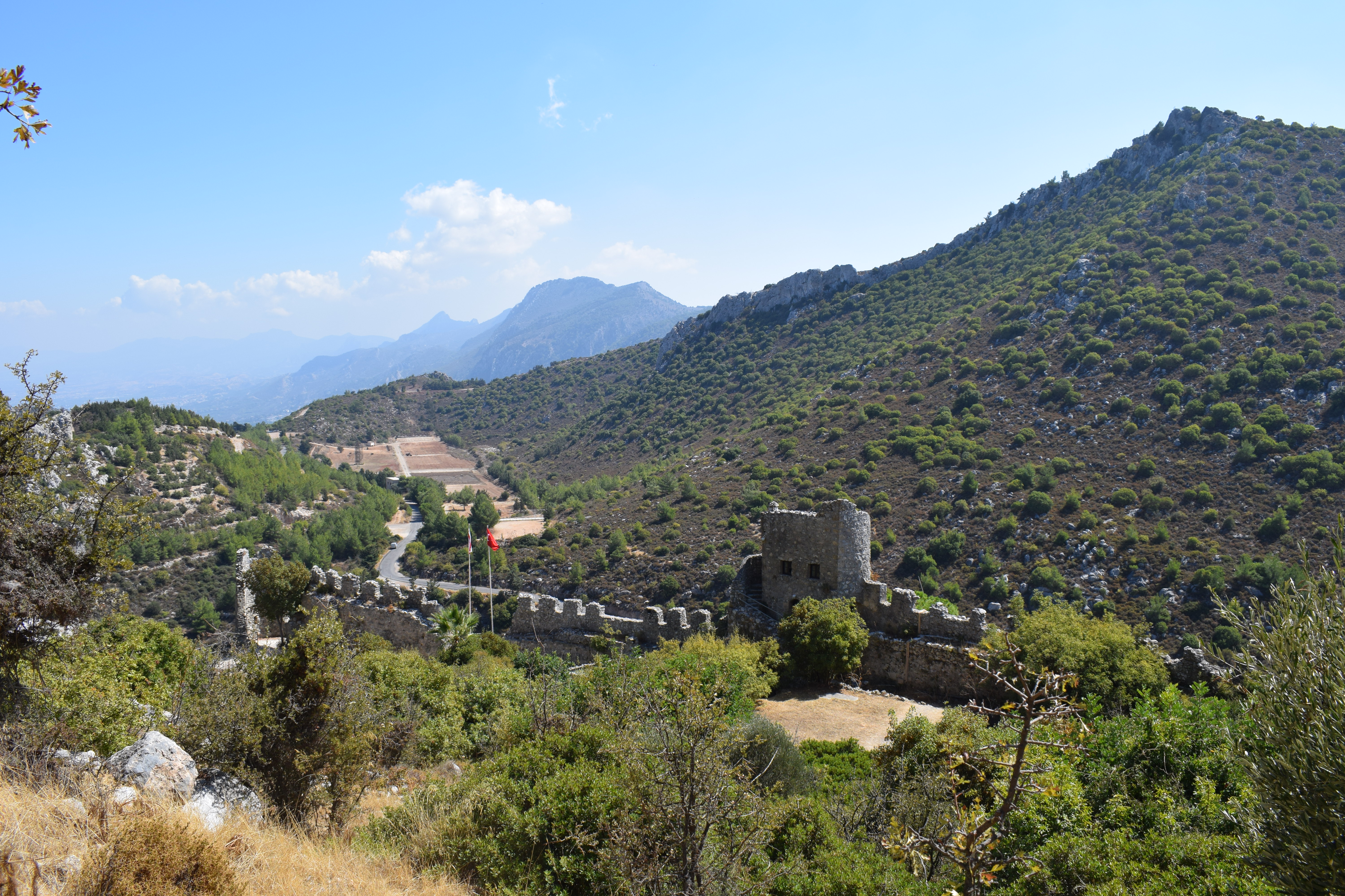 Непосредственно перед побережьем мы пересекаем известняковую горную цепь Кириния. На высоте около 700 метров расположен очередной пункт нашей остановки – замок святого Иллариона. Разумеется, святые замки не строили. На этом месте изначально был скит монаха Иллариона. Скит разросся до монастыря, а уже затем крестоносцы построили крепость и даже летний королевский дворец. Всё это вместе стало называться замком.