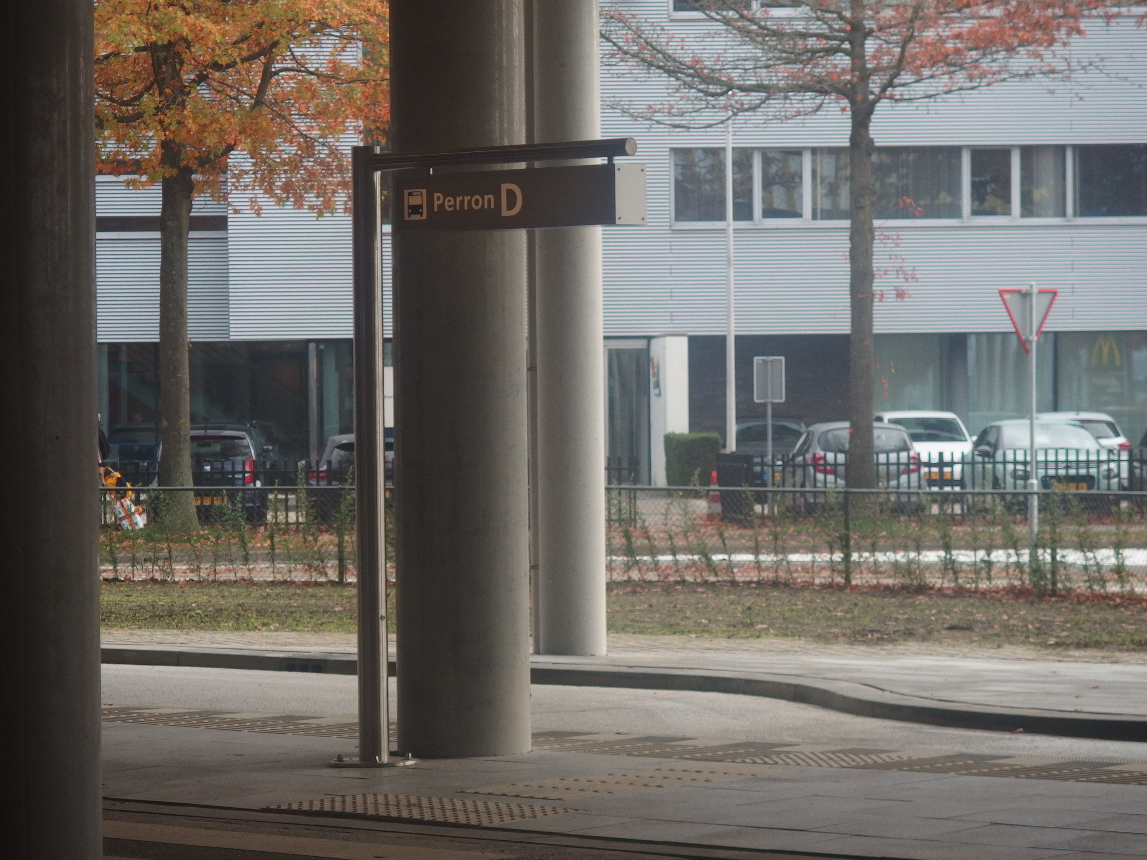 Перрон D. Сюда приезжает автобус.
