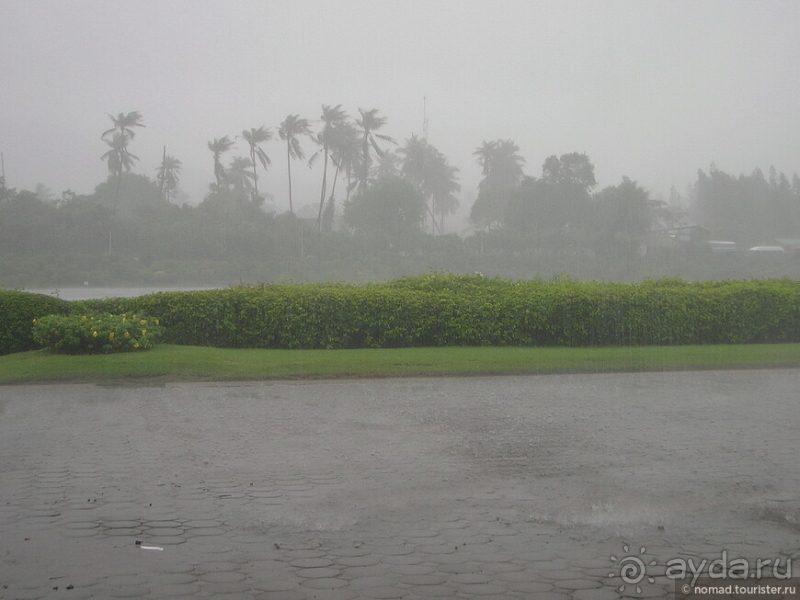 За все предыдущее время дожди были только на Чанге, и то только вечером и непродолжительные. Зато, в последний день моего пребывания на Тао погода испортилась, всю ночь лил ливень, на море начался шторм. В общем, сначала я с трудом добрался да причала (дорога там практически отсутствует), а потом еле доплыл на катамаране обратно на Самуи, так как разыгрался нешуточный шторм. Здоровенный катамаран бросало как щепку, волны перехлестывали через крышу, облевались почти все пассажиры, в общем, было весело. Я, пожалуй, первый раз в жизни начал с ней прощаться, вспоминал, не должен ли я кому, не должен ли кто мне, не обидел ли я кого…