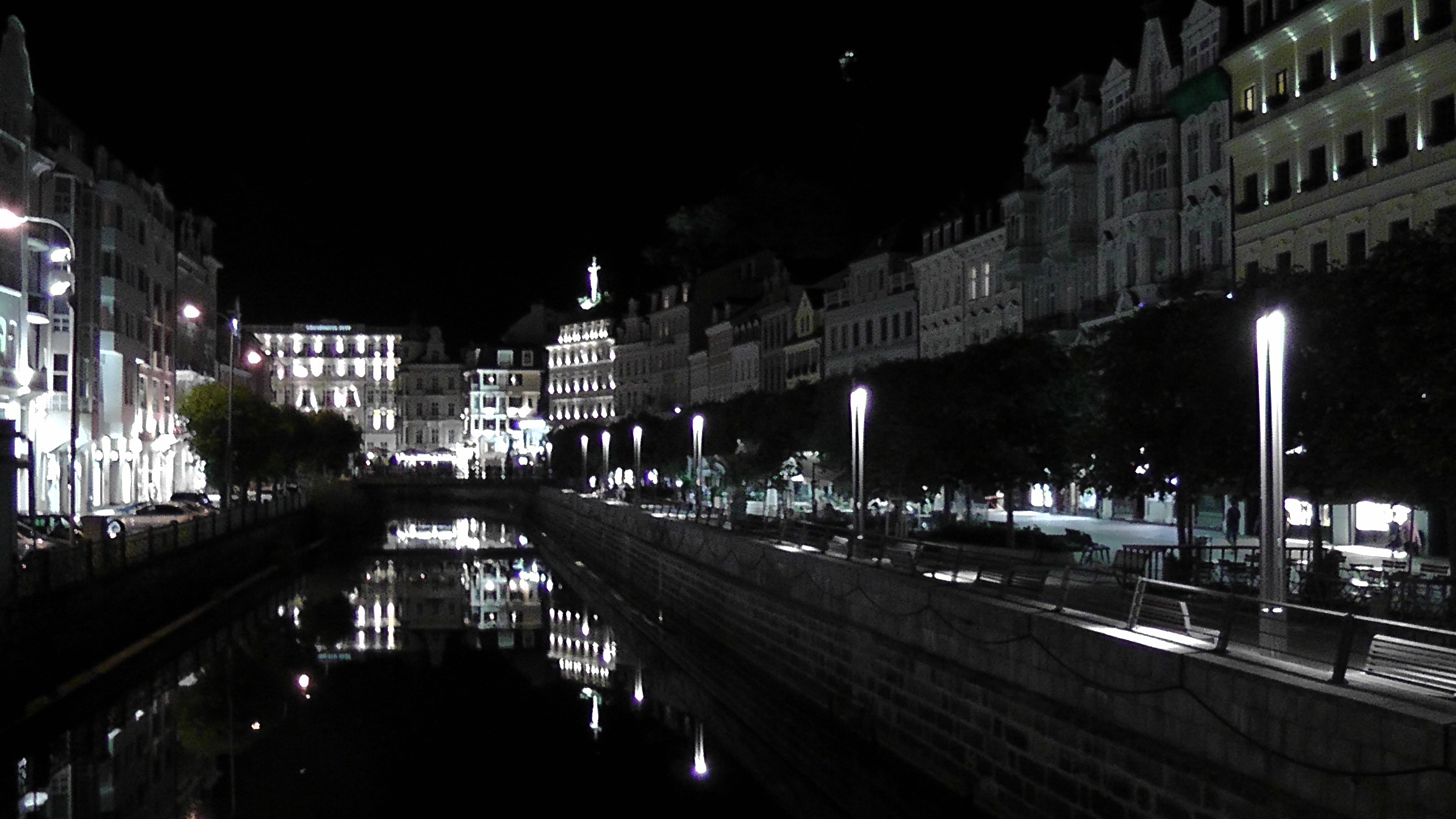Возвращение с одной из экскурсий было уже в темноте. И хотя время совсем не позднее, Карловы Вары удивили своей пустотой и нереальными видами «в ночи».