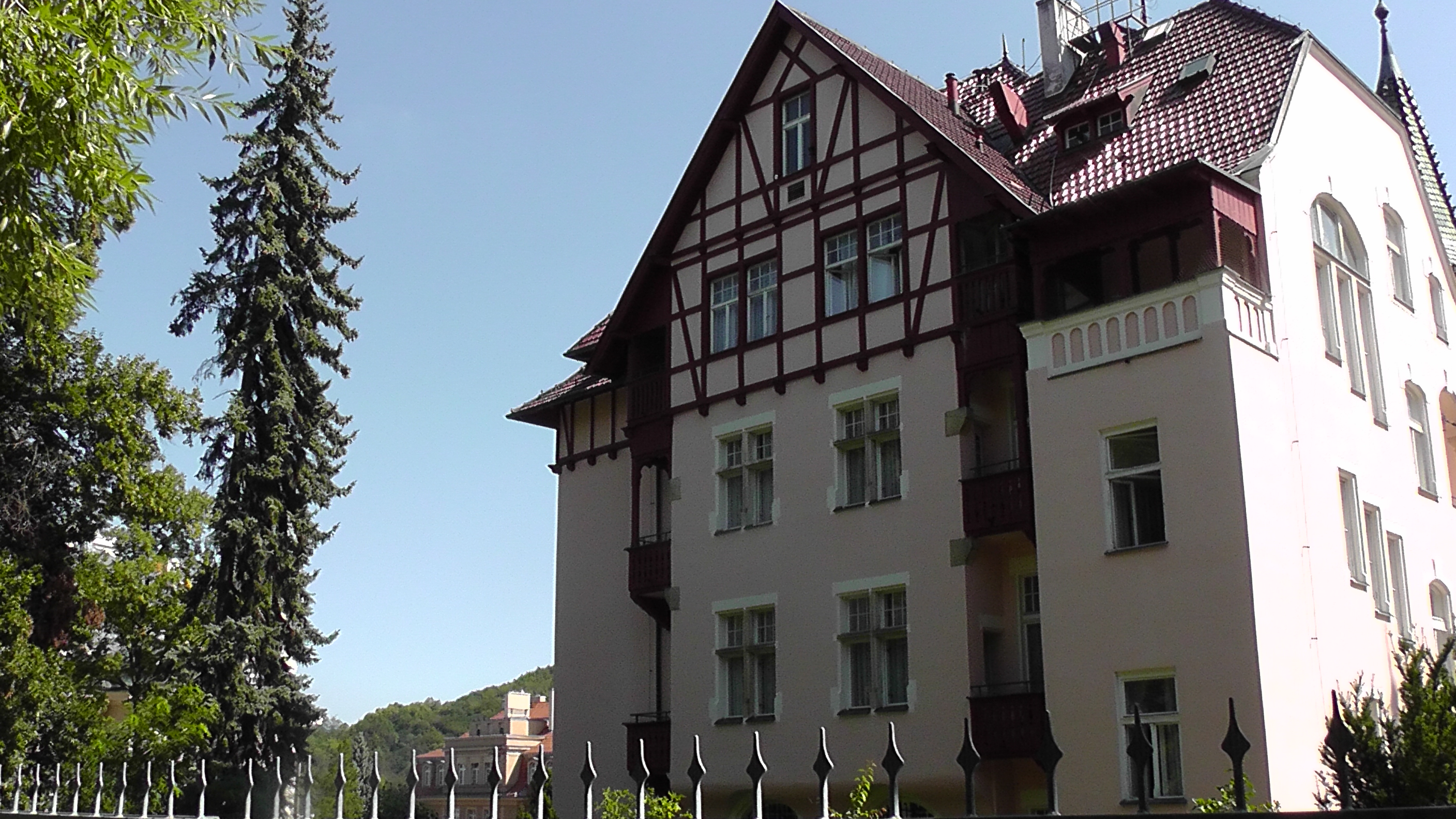 Великолепная вилла "Шопен" раньше была на самой на опушке леса. Владел этим доходным домом карлсбадский бургомистр, а построили его ему, все те же архитекторы Фелнер и Хелмер, творения которых создали облик Карловых Вар.
