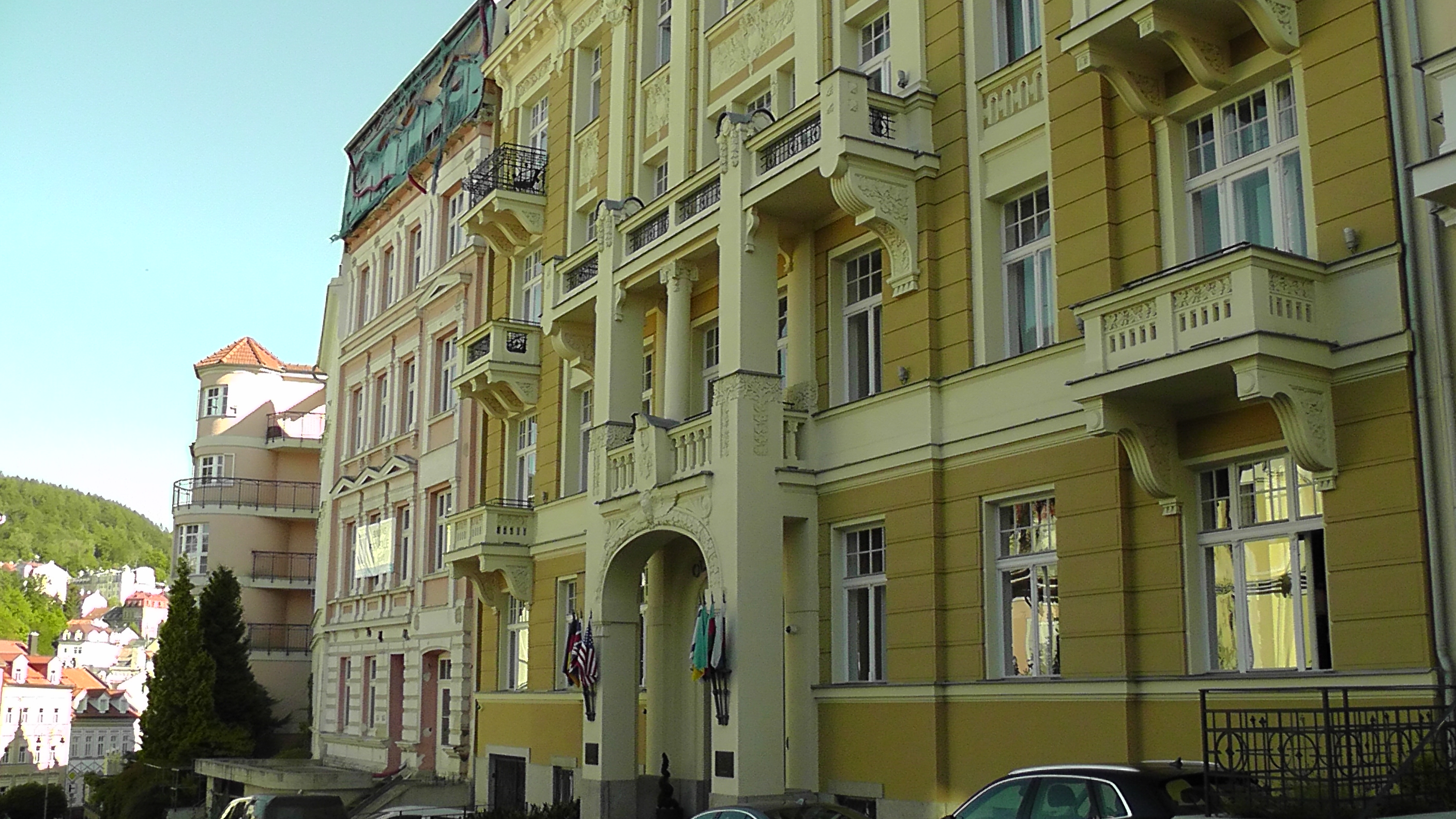 Отель «Томайер", на котором помещена мемориальная доска напоминающая о частом пребывании здесь первого президента Т. Г. Масарика в 1923 -1932 гг. Дом в прошлом имел название "Савой Вест-енд Отель". После реконсткукции в 21 веке опять называется «Савой». Одним из высоких гостей отеля «Савой» был шах Персии Музаффар Эддин. И так ему понравилось, что побывал в Карлсбаде еще несколько раз. Банковских карт в то время не было, поэтому на время отдыха Музаффар Эд-дин перевел в Karlsbad Credit Bank три миллиона франков, из которых 750 000 было потрачено на подарки и одежду для себя и свиты, которую шил известный пошивочный салон Феликса Завойски. Помимо денег за пошив удачливый портной получил орден.. Феликс Завойски ходил по Мельничной колоннаде, распахнувши на груди шубу, и ему досадно было, что никто не попадается навстречу и не видит на его груди орден Льва и Солнца. Ходил он так до вечера… Вилла Rusalka -бывшая вилла Клемм, была построена для здания суда, мастером-строителем Д. А. Клемм. Вилла Carlton - вилла Kensington, построенная по проекту города мастером-строителем Иосифом Валдерте, и вилла Kleopatra носят свое название по сей день. Основным и самым престижным зданием является главный корпус Savoy. Это восстановленное оригинальное здание Savoy Westend Hotel, архитектурный облик которого состоит из конструкции готики и ренессанса аристократических резиденций Франции.