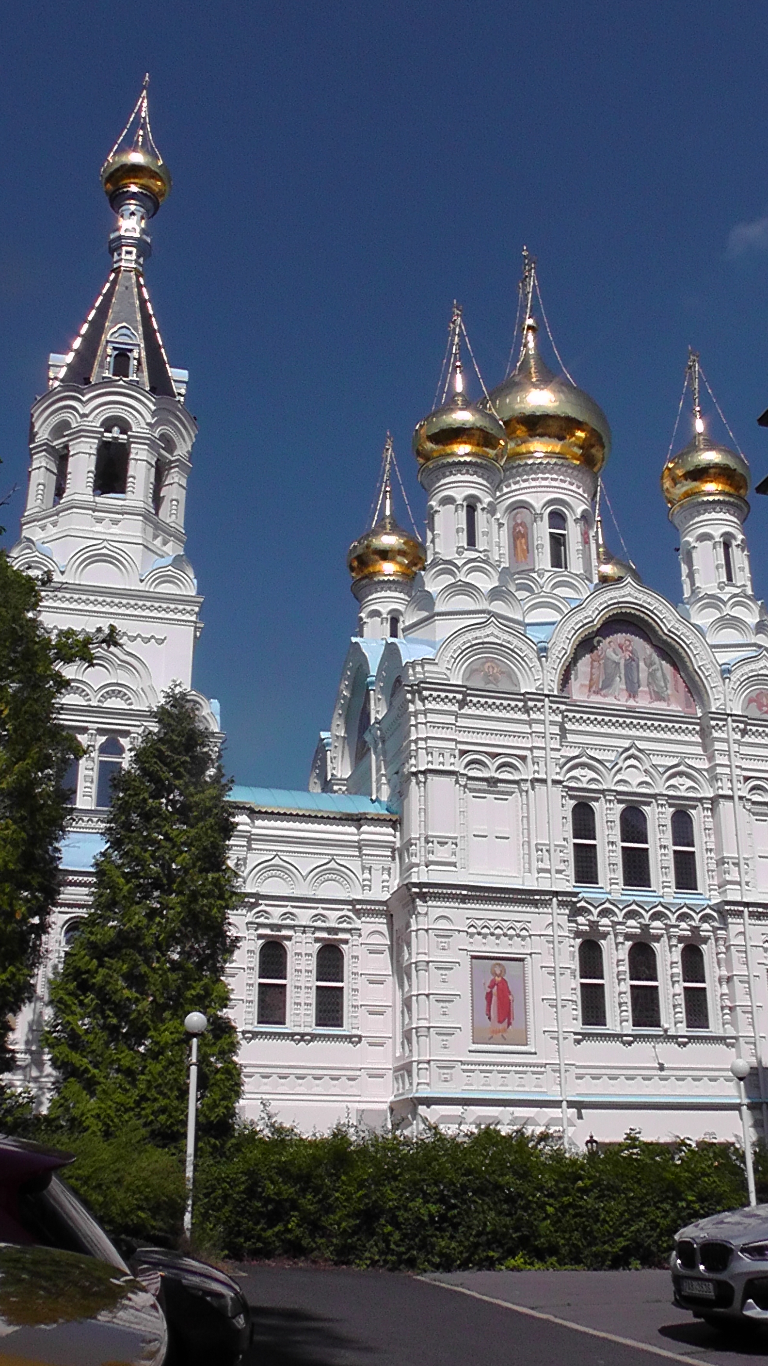 Продолжим прогулку по улице Петра Великого. Привлекают внимание ряд роскошных вилл района "Вест-энд". Жемчужиной этой части города является православная церковь св. Петра и св. Павла, построенная в классическом византийском стиле. Пока глянем на зеленый парк напротив, в нем ресторан и множество прогулочных дорожек. Известный ресторан, который любил посещать Гете - "Малый Версаль".