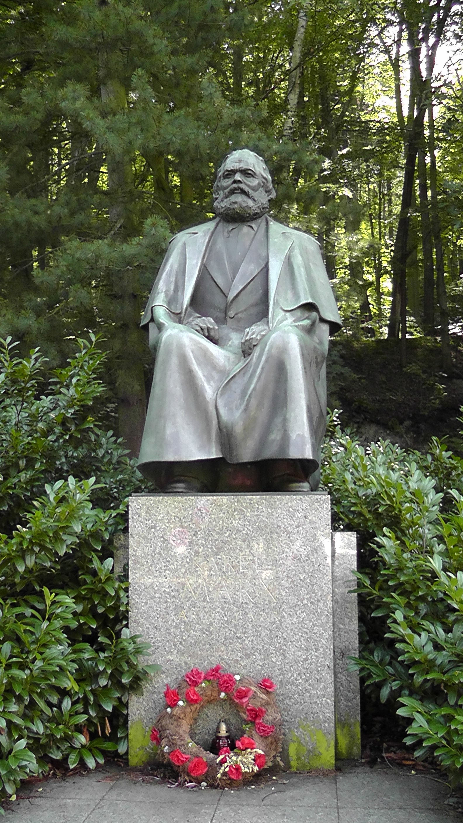 Напротив русского консульства стоит, точнее сидит, фигура великого Карла Маркса. Раньше был еще бронзовый бюст ему у Гейзерной колоннады, в 1970-е скульптура была перенесена в парк, а в 1980-е сослана в музей. Этот монумент установлен 5 мая 1988 г.