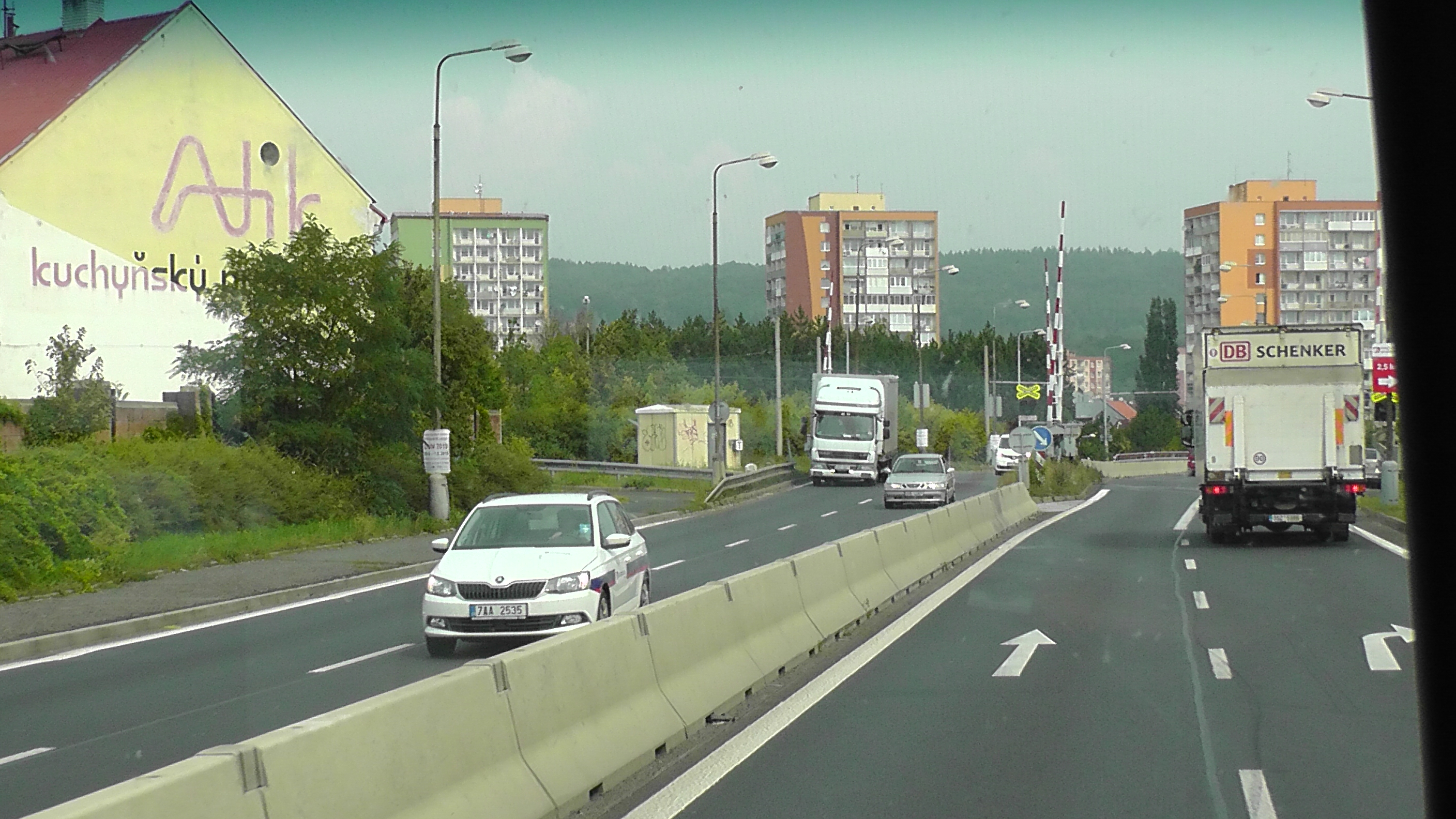 От Праги и в Прагу ездили разными маршрутами. Есть прямое шоссе, по которому за 1,5 часа были в аэропорту при обратном возвращении. Она проходит по плоским полям, с виднеющимися где-то на горизонте горами.