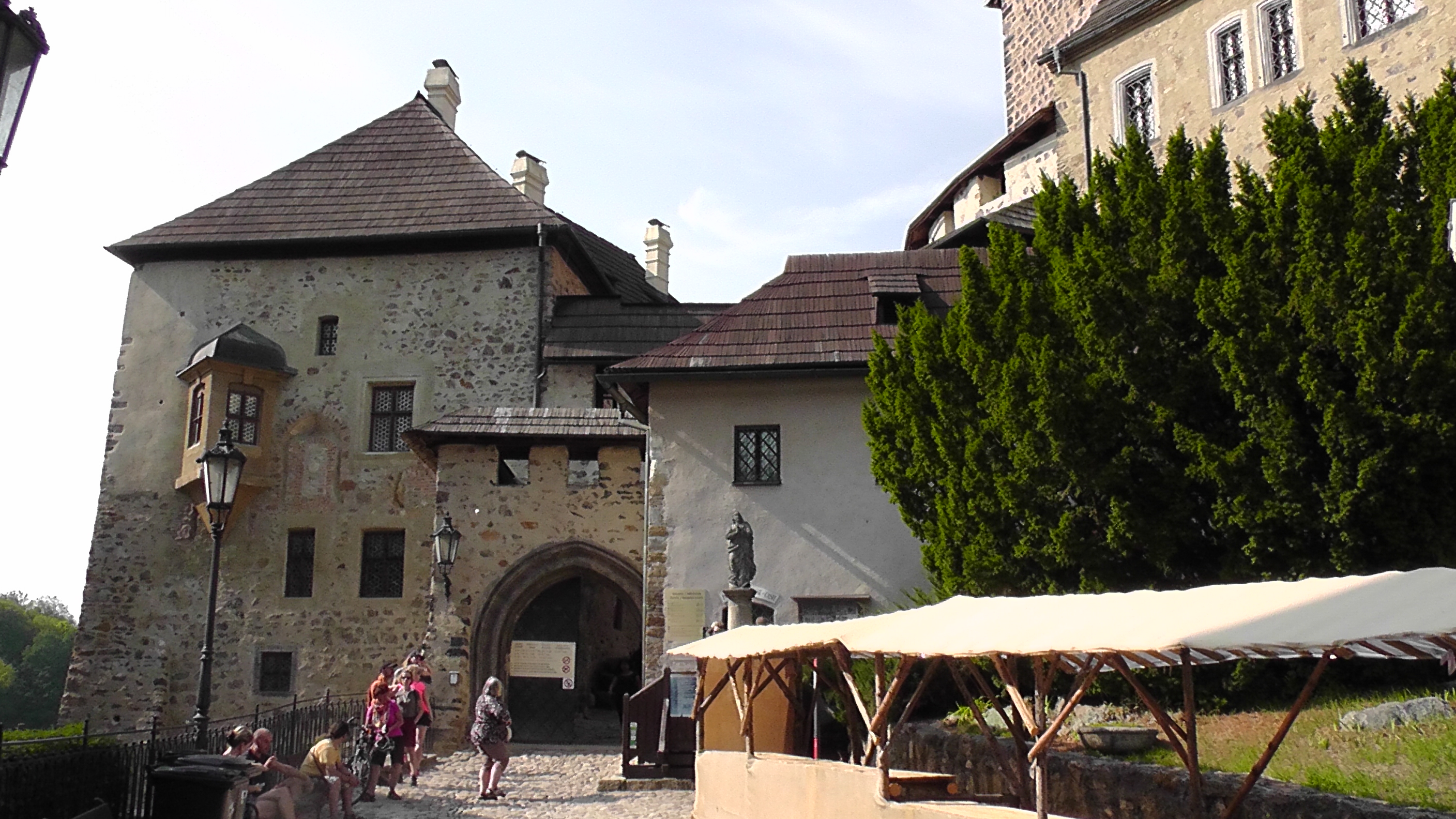 Чем подкупает замок, в отличие от других, где снаружи оштукатурили крепостные стены и вставили стеклопакеты, что в Локете всё производит впечатление первоначального своим суровым видом на скале, брутальной каменной кладкой, деревянными потолочными балками в помещениях, окнами с дутыми стеклами на средневековый лад. От исторических интерьеров внутри замка Локета, конечно, практически ничего не сохранилось. Замок разделён на девять частей, в которых хранятся средневековые артефакты, интересные с точки зрения истории. С 1968 г. действуют музеи в каждом- повторю, каждом помещении замка, поэтому времени на обход всех надо прилично. В этих музеях есть как выставка средневекового фарфора, так и древнего оружия. Все экспонаты выставок подлинные отчего и не обделены вниманием приезжих туристов и посетителей замка. Музейные залы разной тематики, начиная с собрания сундуков, до комнаты-музея метеорита. В подвалах даже воссоздали камеры средневековых пыток.