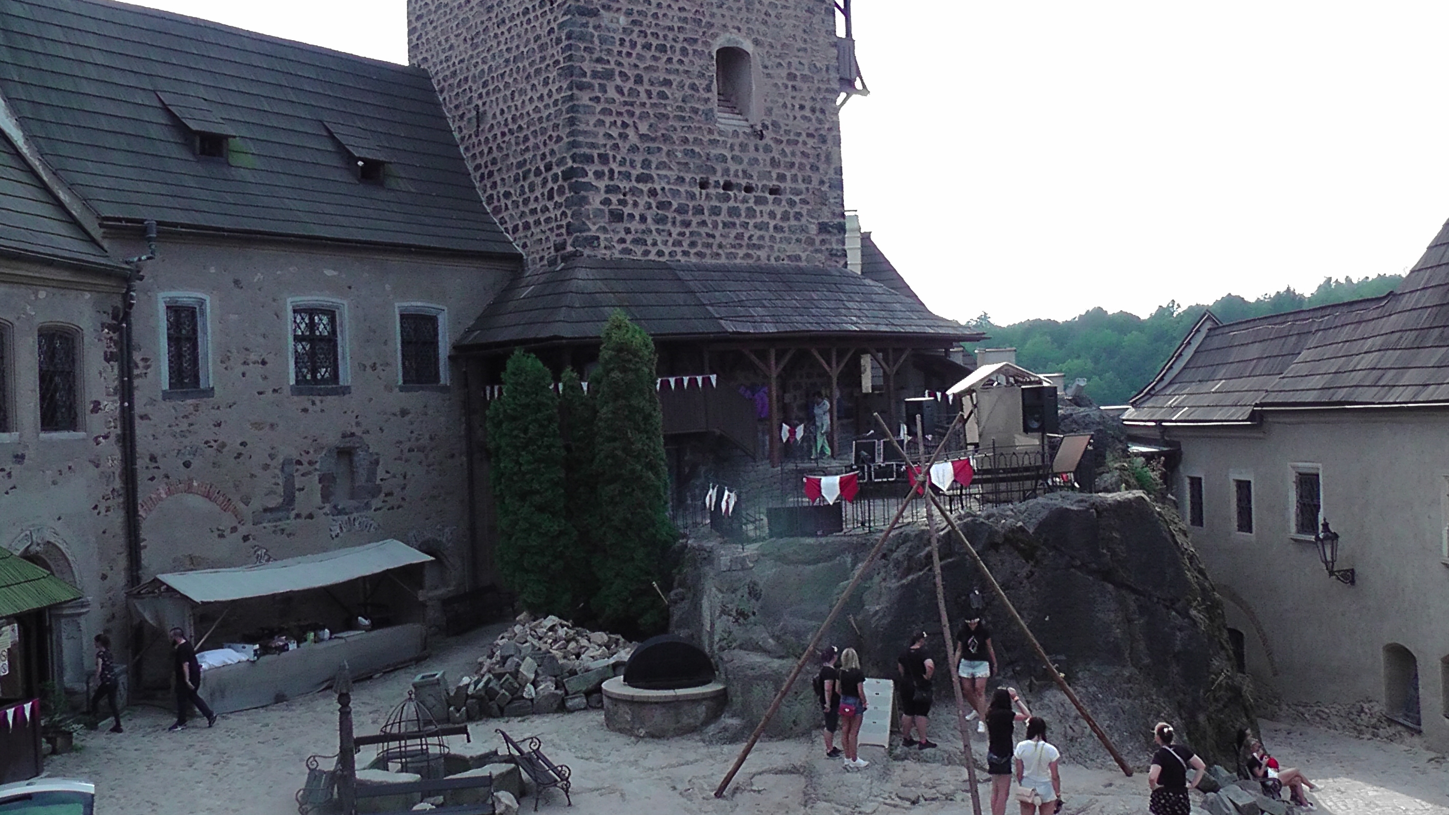Центром замка является двор с каменным утесом посередине. На утесе, как на природном балконе, стародавние феодалы наблюдали за казнями, проводившимися во дворе, или какими-то другими событиями.