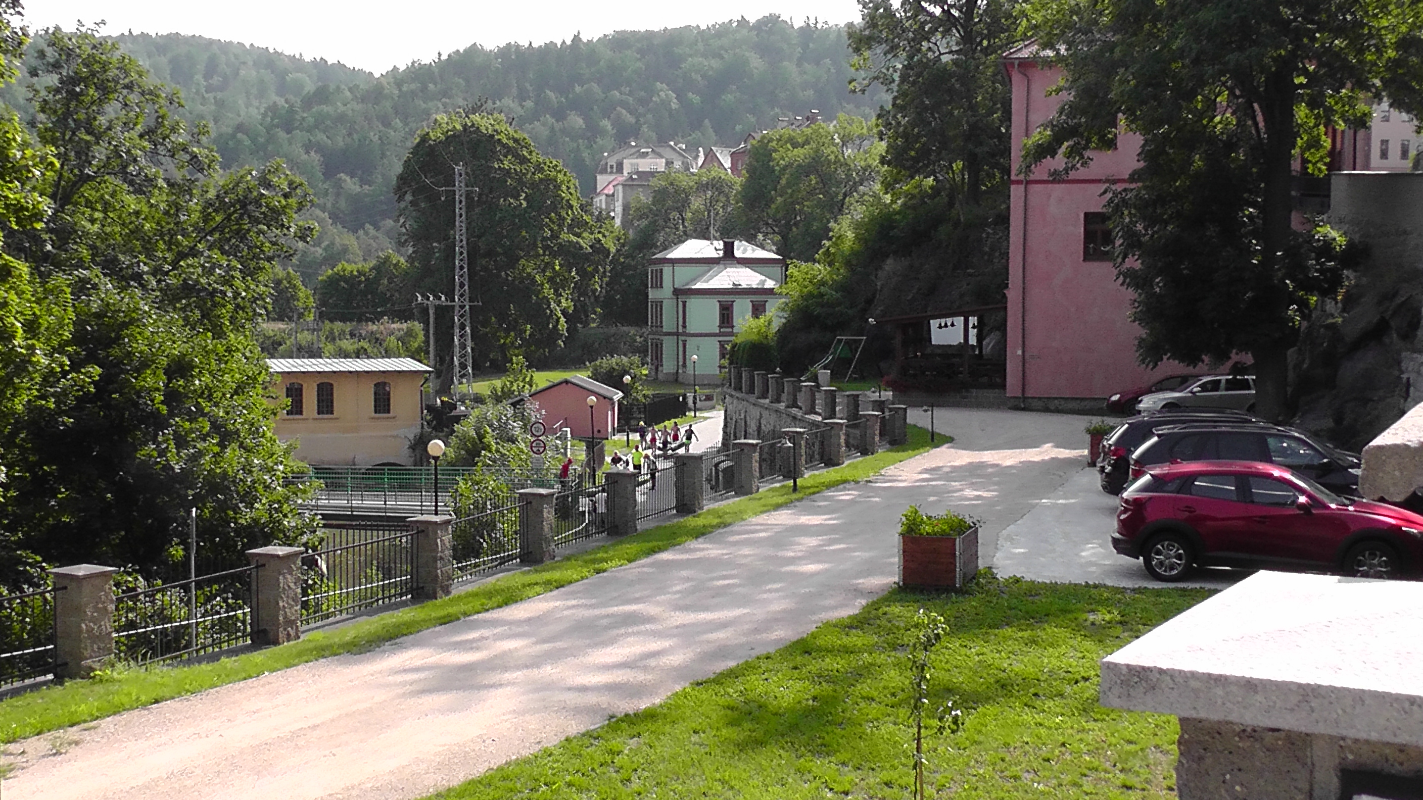 В город Локет ездила самостоятельно общественным транспортом и уложилась в 5 часа с момента отбытия из Карловых Вар и приезда назад. И замок небольшой, а городок, точнее его историческая часть, совсем малюсенькие. Автобус останавливается не под самим замком, экскурсионным автобусам так же не разрешают около замка парковаться и в центре города. Но в прогулке до замка есть и хорошее. Надо немного в горку подниматься и видишь сначала шпили замка, ориентруешься в ходьбе на них и как бы подготавливаешься к встрече с о сказкой.