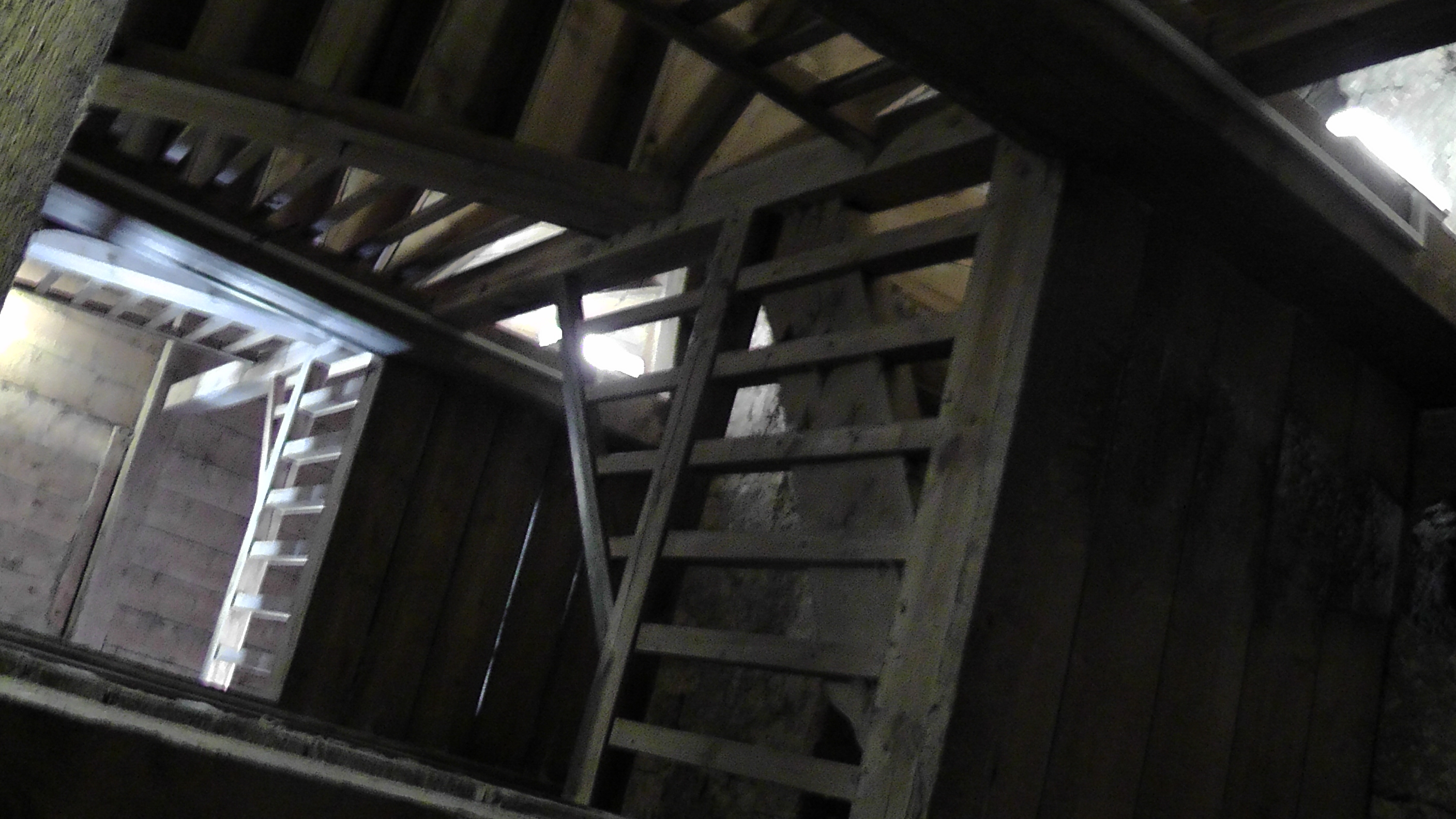 На верхних ярусах большинство перекрытий остались первозданными, а на стенах до сих пор видны старинные фрески и роспись.