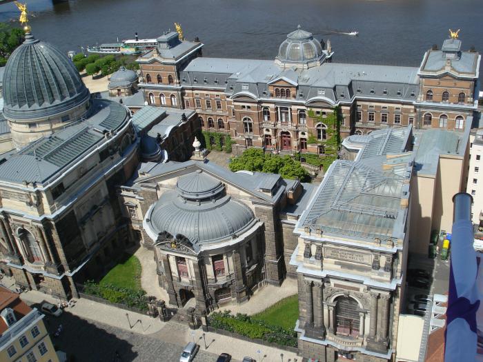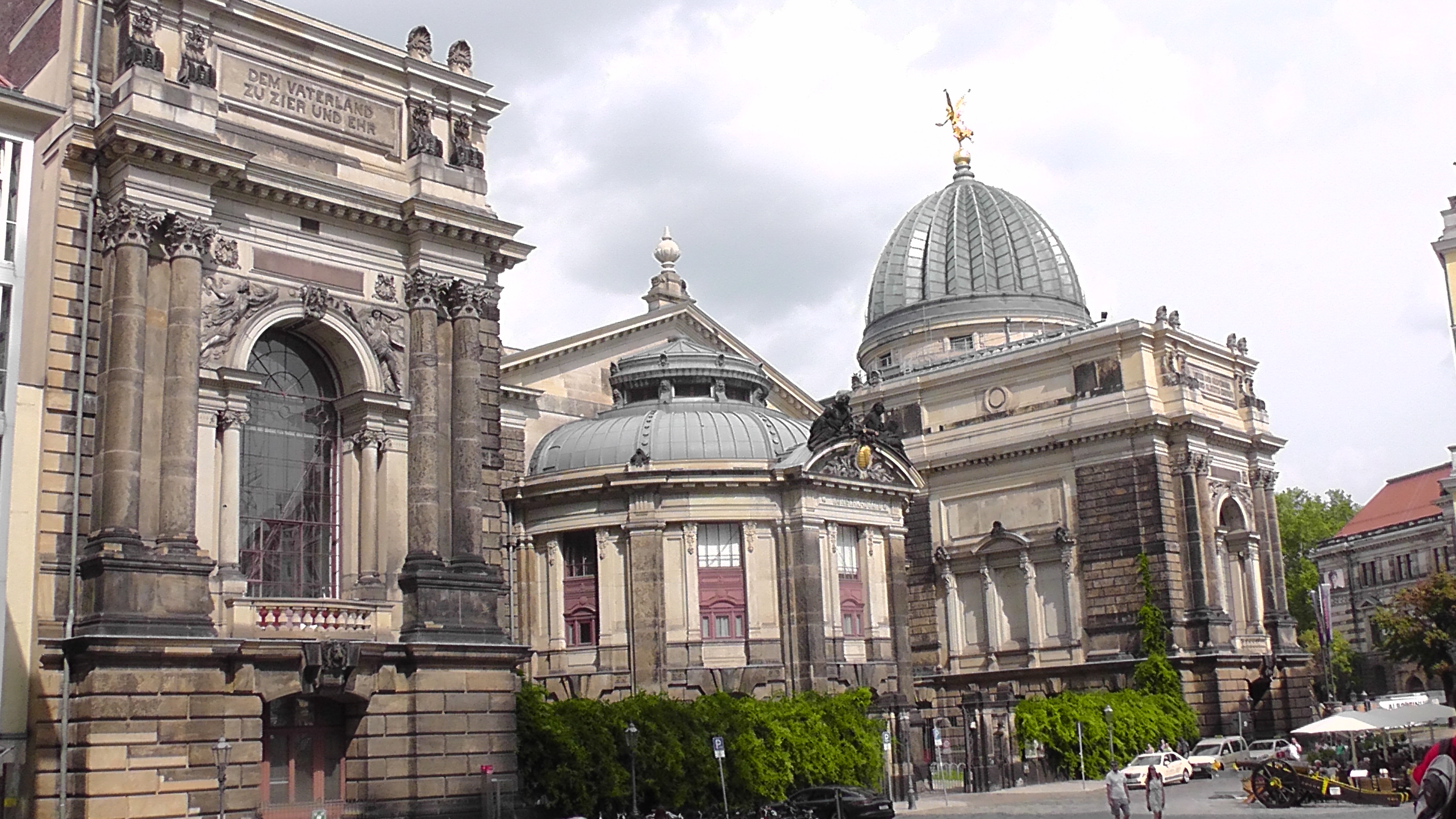 Самым интересным сооружением террасы Брюля смотрится Академия искусств. Здание в стиле классицизма с узнаваемым куполом, увенчанным золотой статуей богини Фамы, или Глории, является сегодня одной из визитных карточек Дрездена. Ребристый купол из стекла и металла дрезденцы прозвали «лимоновыжималкой».