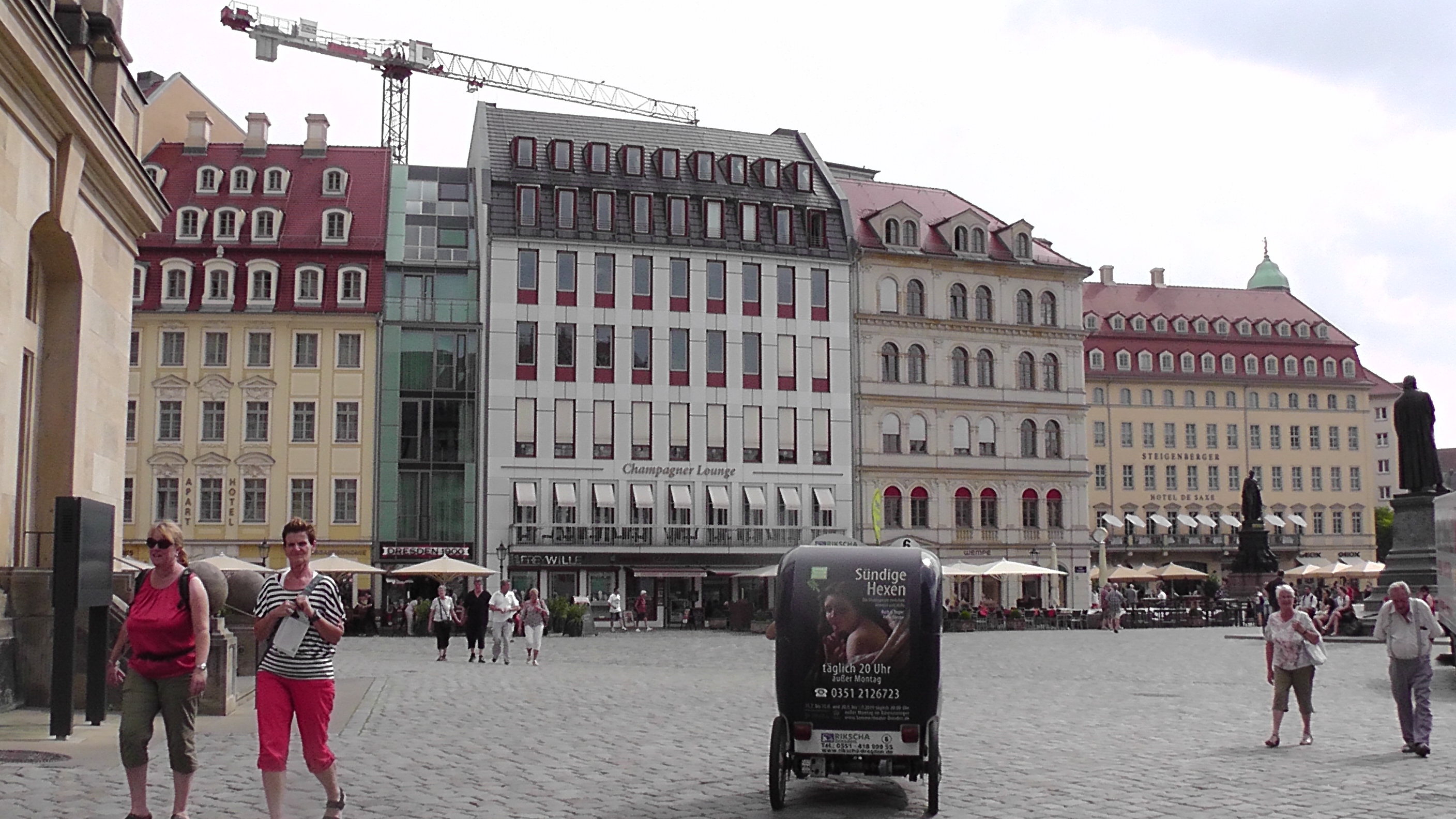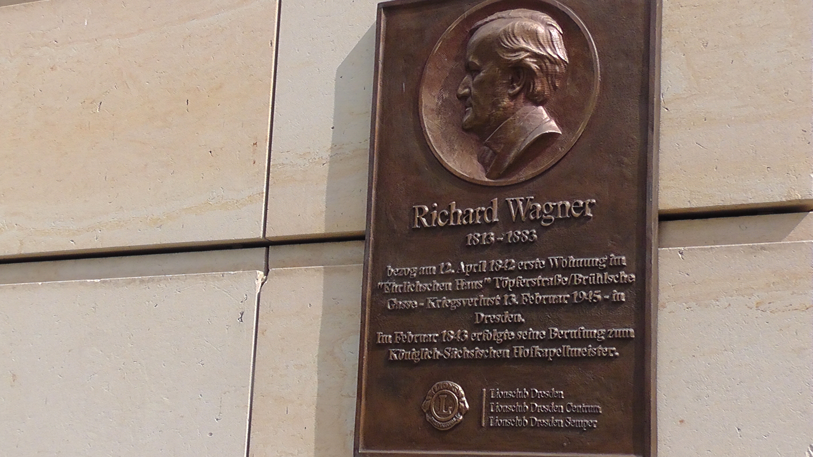 Вдоль строя курфюстов по улице Аугустштрассе, идем к Собору Фрауенкирхе. По пути отель, на стене памятная доска сообщает, что в нём два года жил композитор Рихард Вагнер. В то время Дрезденская опера была одной из лучших в Германии. Место капельмейстера королевского саксонского театра давала 5 тысяч франков дохода и оплачивалась от двора. Потому Вагнер числился на придворной службе и жил почти под стенами дворца.