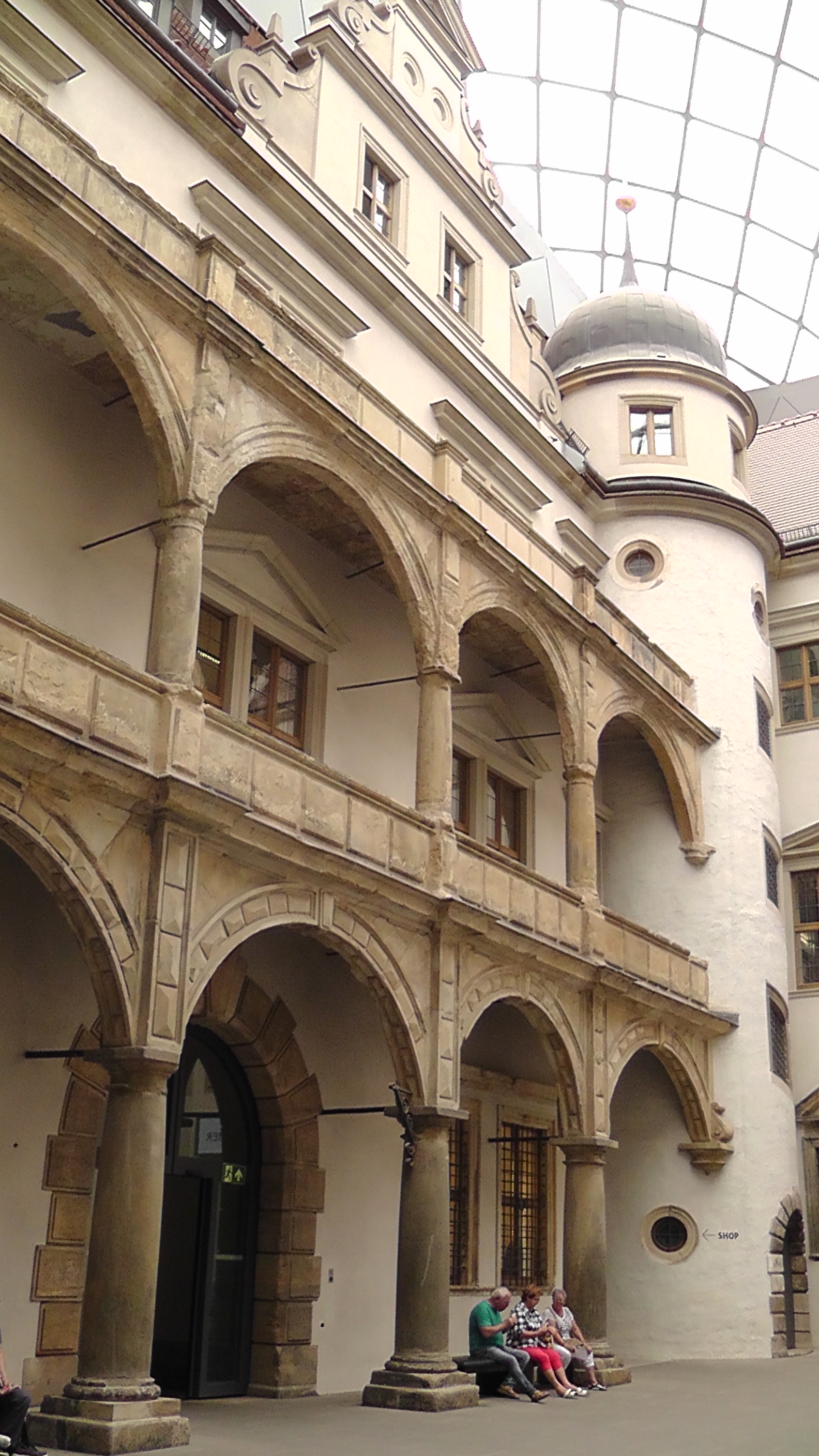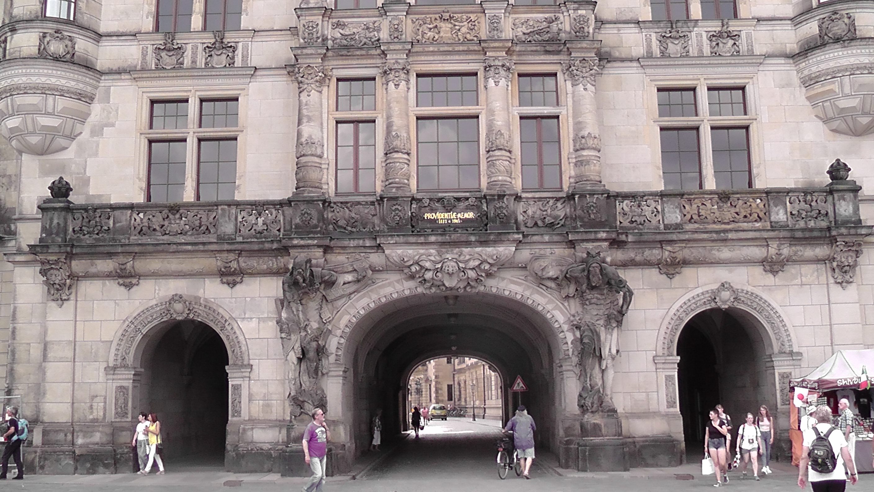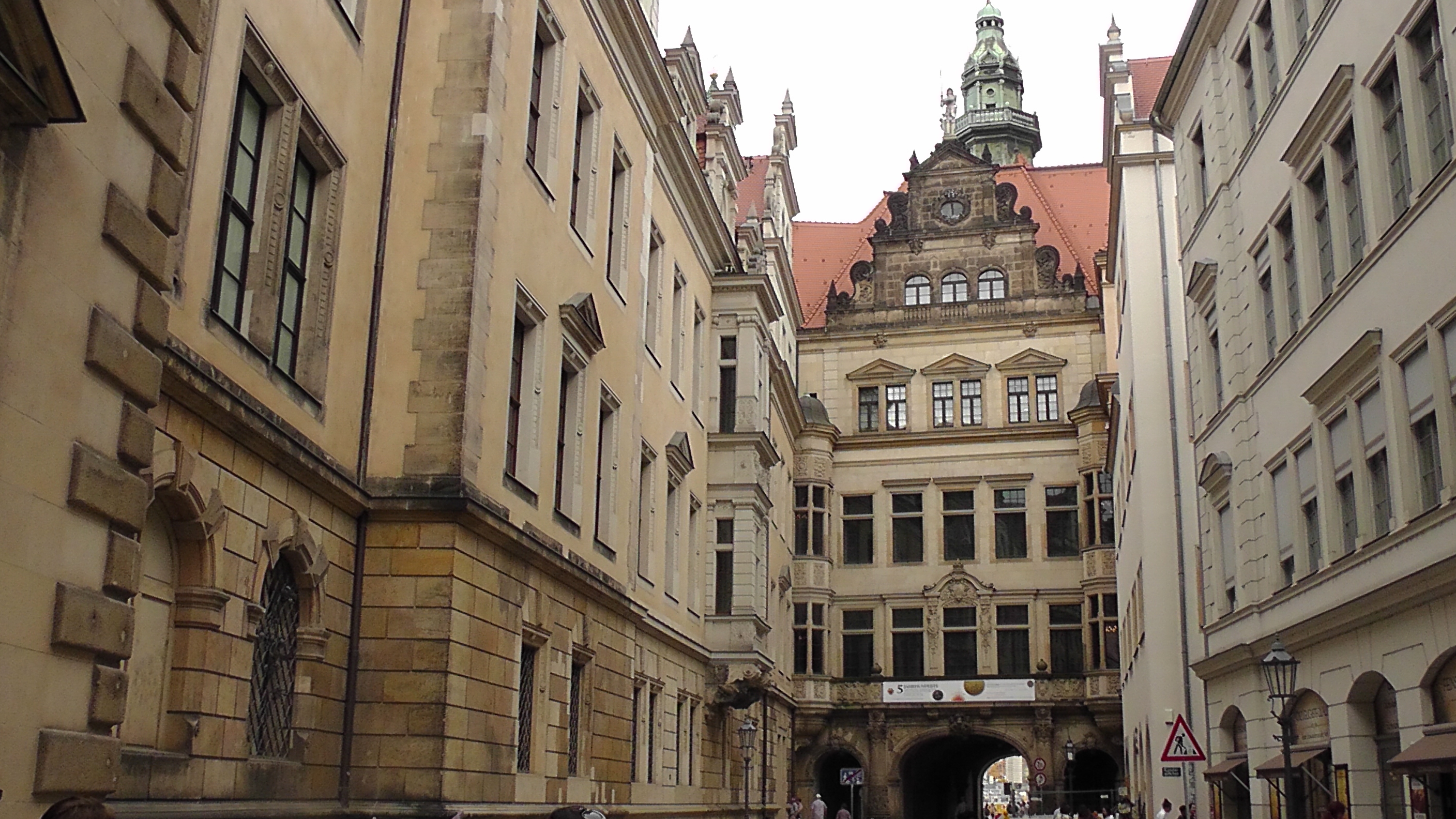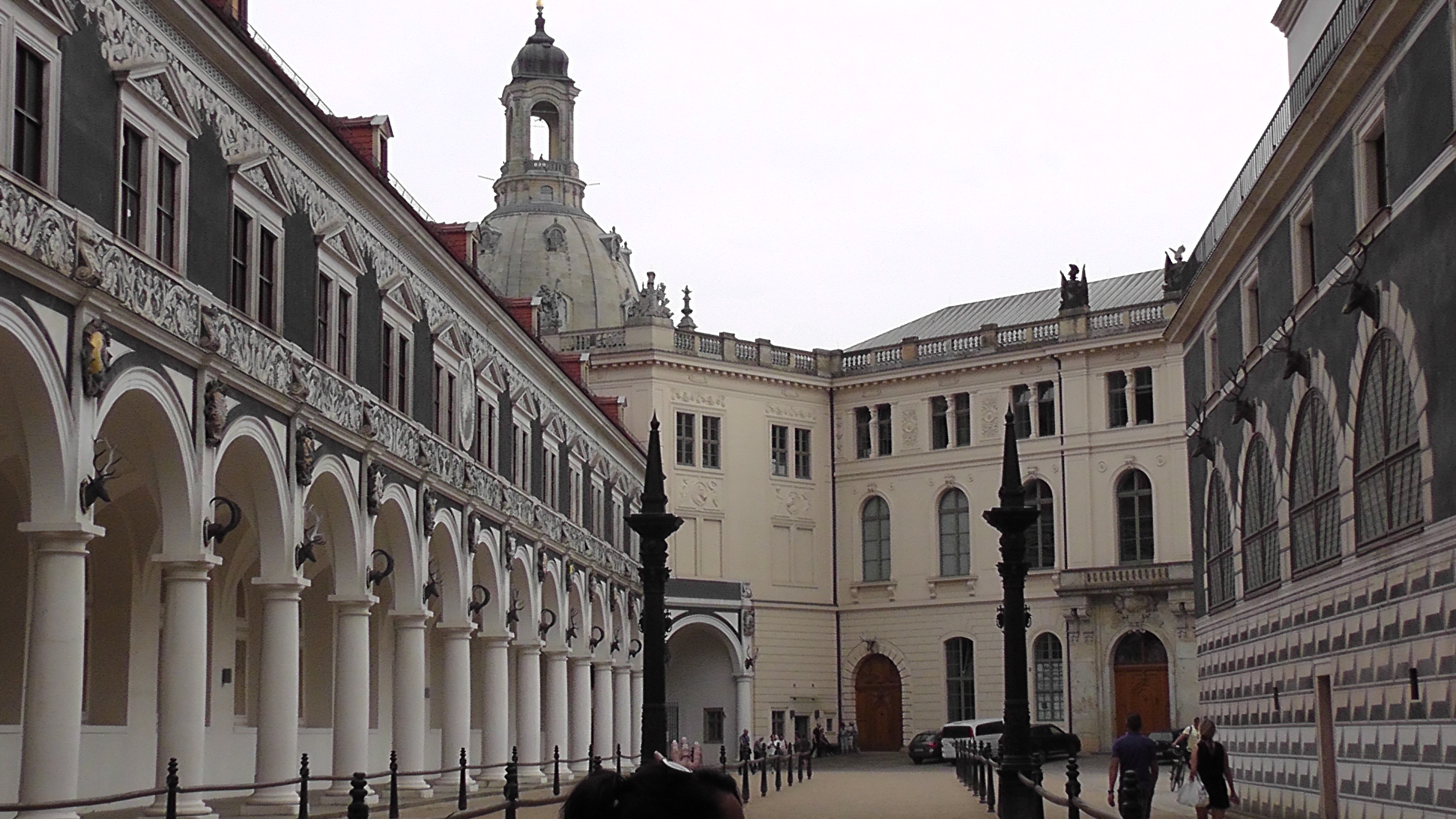 С проулка под королевским дворцом заходим в конюшенный двор. В средние века в конюшенном дворе "Штальхоф" проводились рыцарские игры и конные состязания. История «Штальхоф» ведется с конца XVI века, когда по указанию курфюста Саксонии Кристиана I были построены королевские конюшни во дворе Дрезденского замка-резиденции.