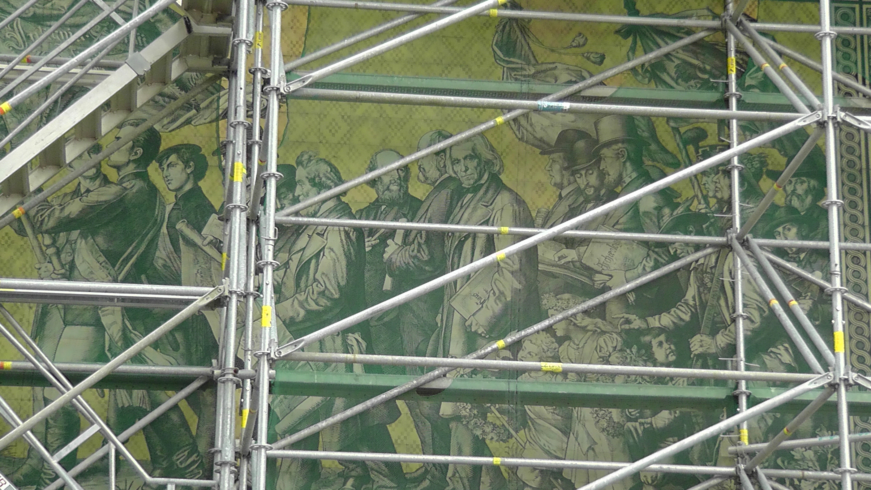 Снаружи Продольной галереей (Лангер Ганг), настенное панно длиной 101 метр, изображает историю саксонской династии Веттинов в виде конно-пешей процессии. Сами немцы называют картину Фюрстенцуг. Все 35 маркграфов, курфюрстов и королей, правивших в Саксонии с 12 по 20 столетие, гордо шествуют друг за другом на огромном панно. Кроме королей, изображены также 59 ученых, деятелей искусства, ремесленников и крестьян. Последними участниками процессии изображены автор панно Вильгельм Вальтер и его ученики.