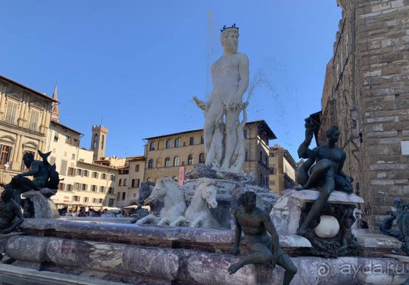 Я пришла, чтобы своими глазами увидеть мировые шедевры: копия «Давида» руки Микеланджело, «Геркулеса» и «Юдифью» Донателло, и фонтан «Нептун». Не знала, что вроде как в фонтан кидают монетку и загадывают желание, если это так, то не упустите такую возможность.