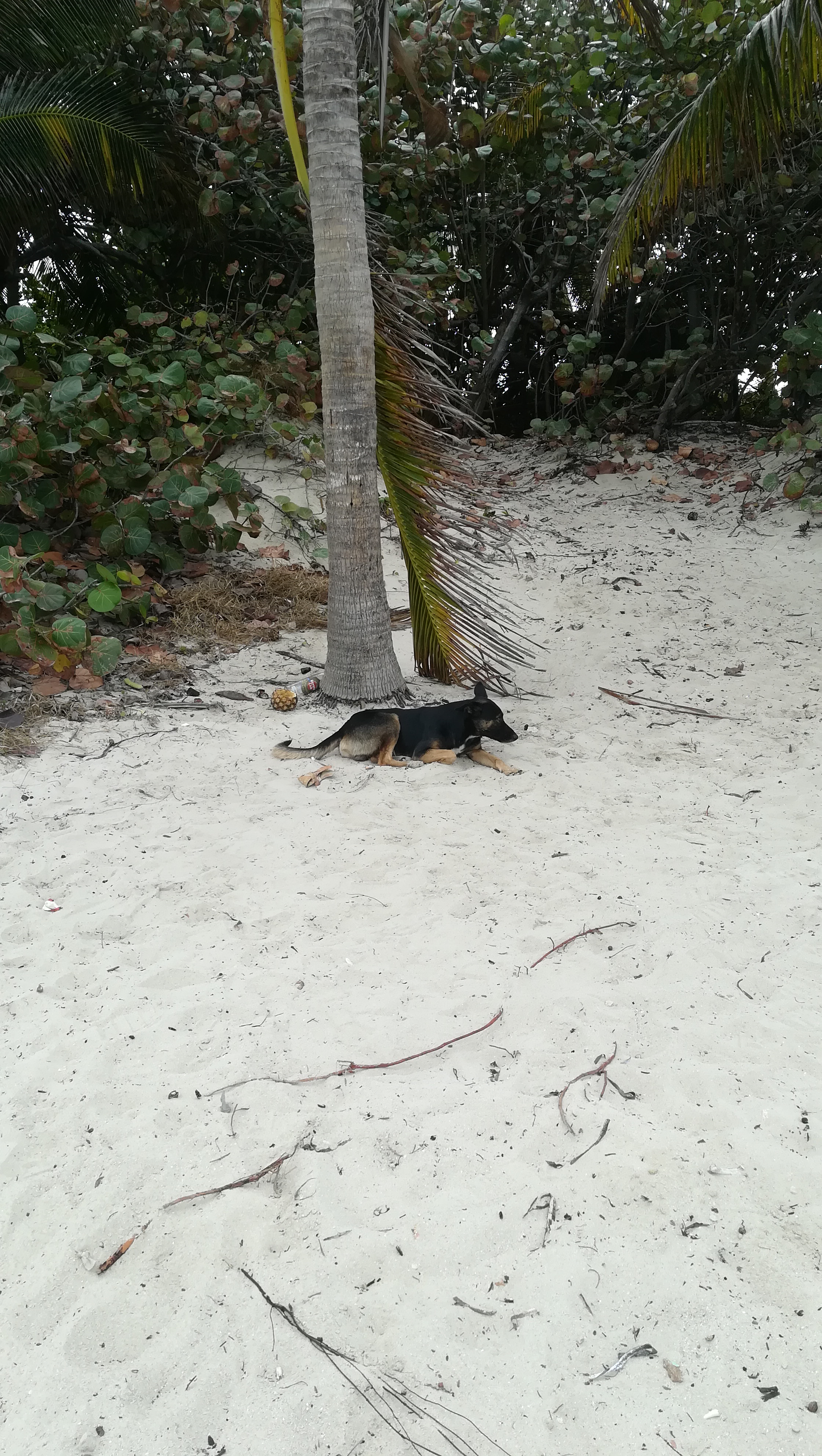 Напоследок ещё отмечу, касаясь этого пляжа, что попытался здесь плавать с подводными очками. Вода идеально прозрачная, видно всё вокруг. Но смотреть нечего. Только белый песок на дне. Подводная часть пляжа показалась нам безжизненной. Но один раз нами был замечен местный хлопец, плававший здесь с маской и подводным ружьём. Через полчаса он вылез на берег, держа в руке связку из полдюжины средних рыб, общим весом килограмма три.