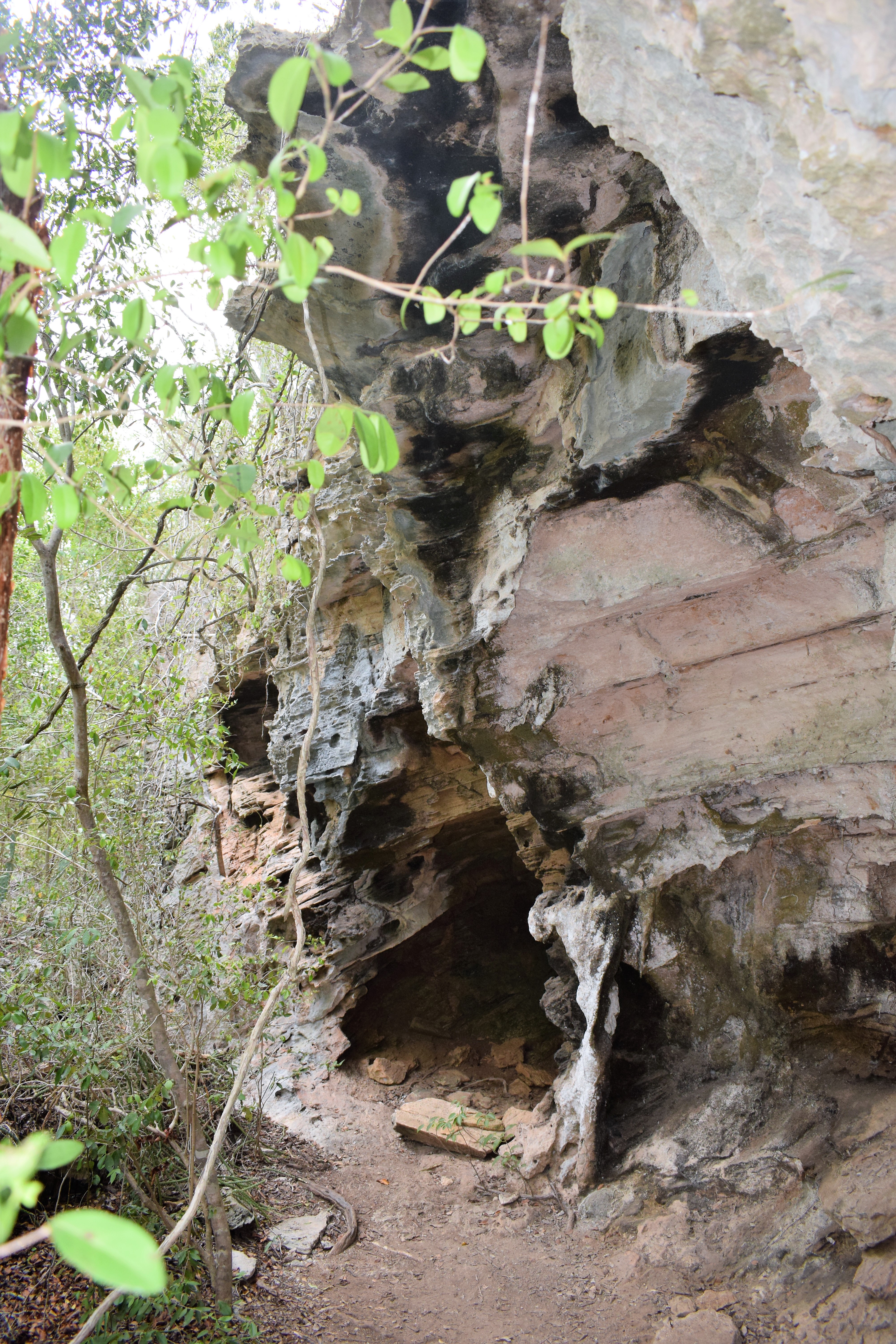 Местами под ногами попадаются провалы в скалистом грунте, нужно быть осторожным. Подходим к небольшой пещере.