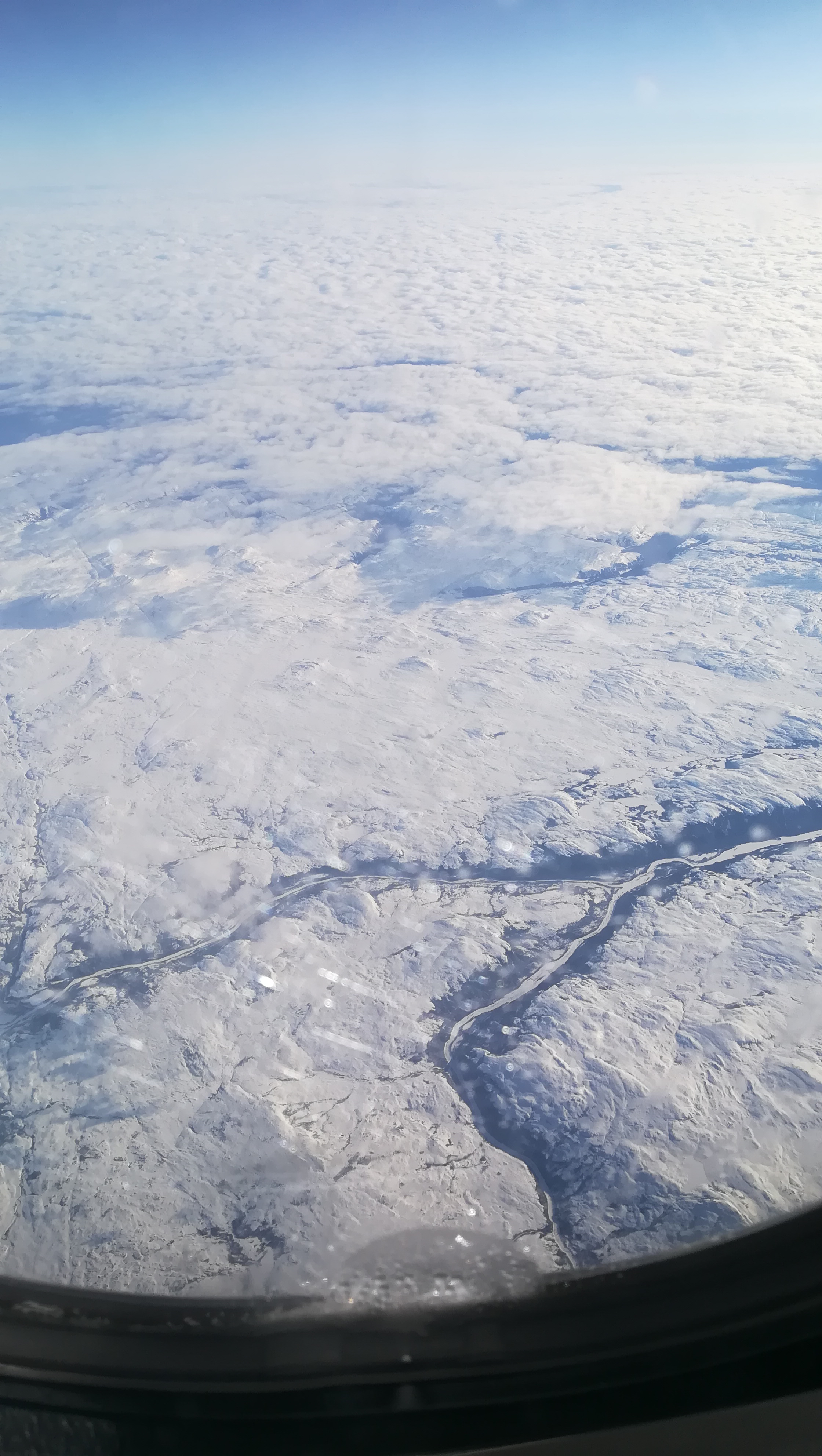 Между тем, мы уже над канадским Ньюфаундлендом. Густая облачность, закрывавшая от нас пролетаемую территорию ещё с туманного Альбиона, наконец рассеялась. Впервые за последний год вижу землю, покрытую снегом.