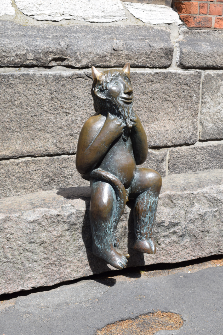 На лавочке у церкви сидит… бронзовый чёрт. Церковь и чёрт? Всё дело в легенде. По неясным причинам горожанам надо было возвести церковь за какой-то немыслимый срок, вроде за ночь. Естественно, смертным это было не по силам, и они обратились за помощью к нечистой силе, попросив её соорудить гигантскую пивную. А утром приёмная комиссия обманула чёрта и освятила строение как церковь. Впрочем, чтобы соблюсти условия договора, горожане уже сами построили неподалёку и трактир, действующий и поныне. И теперь довольный чёрт сидит на лавочке, лыбится проходящим туристам и сверкает отполированными миллионами рук рожками.
