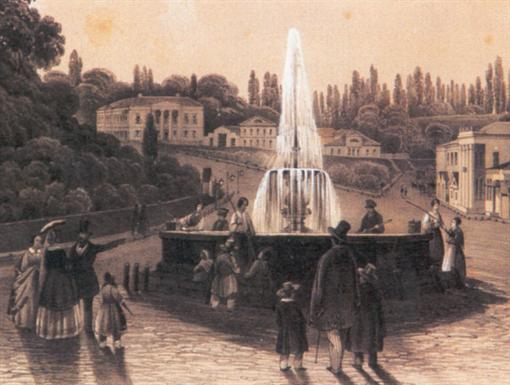 Первый водопровода в Киеве известен с XVII века. Тогда ключевую воду с киевских гор подвели католическому Доминиканскому монастырю, потом подобное сделали в Братском монастыре. В самом Киеве воду брали из Днепра. Но крутые склоны делали этот процесс трудным. Водовозы и водоносы снабжали жителей за плату водой, если не было своих колодцев. Город становился большим и колодцами его не напоишь. В 1870 году Киевское Городское Общественное Управление продало концессию инженер-полковнику Струве на снабжение Киева водою. В 1872 году в Крещатом парке построили первую водонапорную башню, а в 1876 – вторую, всего их было три - третья около Михайловского монастыря. Интересный факт, фонтаны первоначально делались не для украшения города, а для подачи воды. Самый старый в Киеве- фонтан Самсон был частью старинного водопровода, сделанного из деревянных труб. Около каждого фонтана работали служители, которые за плату наливали воду в бочки, ведра. Один из несохранившихся фонтанов под названием «Иван»- по имени градоначальника Ивана Фундуклея, находился на Европейской площади под парком. Ранее называвшейся Конная площадь, поскольку здесь проходили лошадиные ярмарки.