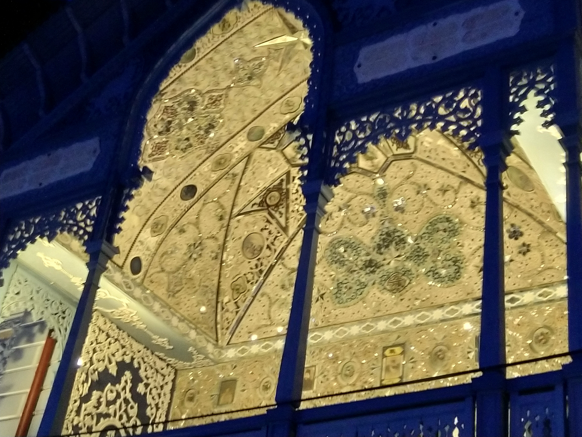 Перед входом в парк самое красивое старинное здание города. Высокопоставленные особы никогда не обходили вниманием этот город. Удивительный дом голубого цвета с массой ажурных украшений принадлежал персидскому консулу — Мирза-риза-шаху, а после его кончины перешел в собственность города. Надо смотреть не только на резную вязь балкончиков, но вглядется в потолок центральной части. Она выложена самоцветами в причудливый рисунок, особенно впечатляет сияние камней в ночной подсветке.