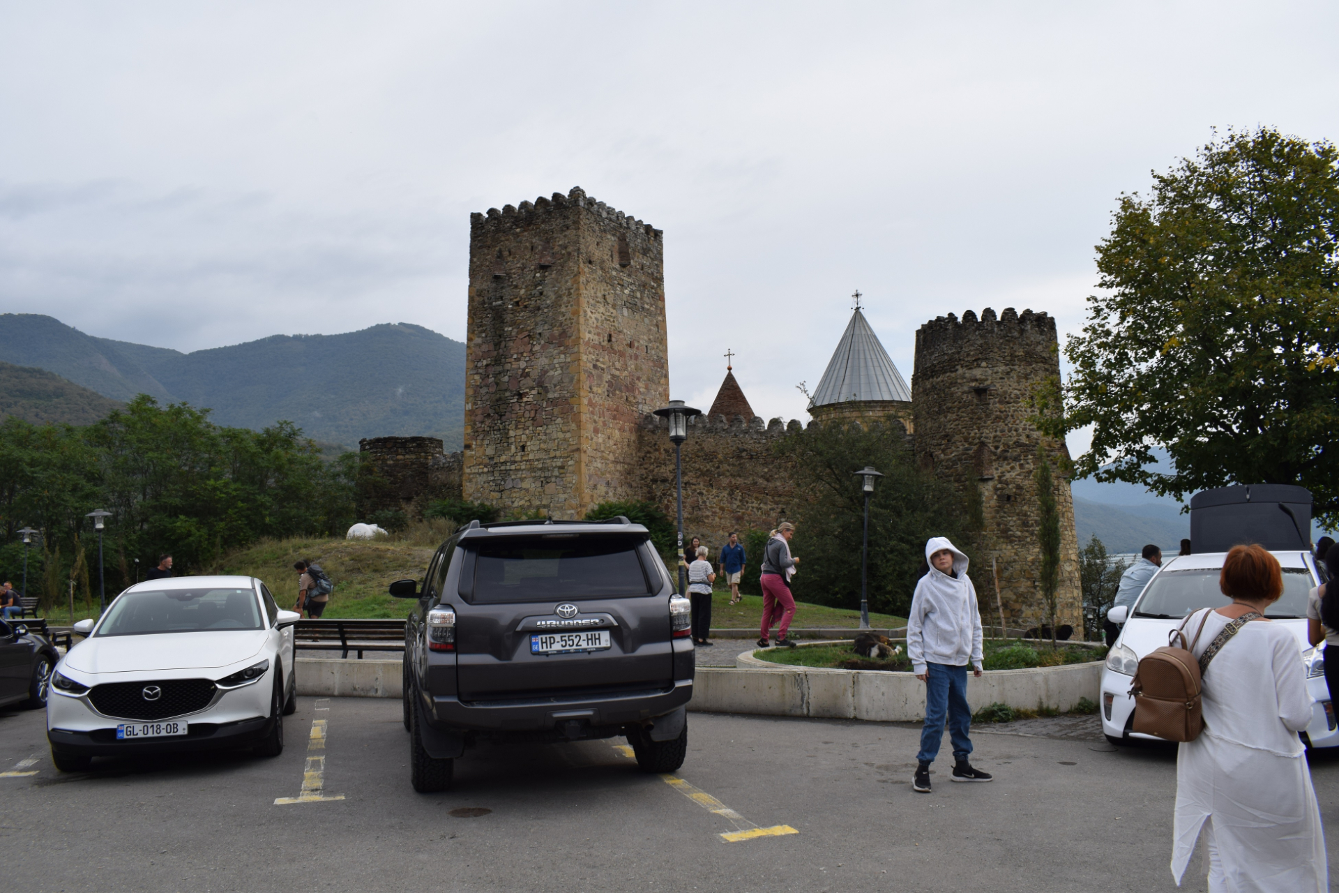 Разгадка произошла прямо на парковке в Степанцминде: там рядами стояли минивэны Mitsubishi Delica. Дорога к храму была настолько узкой, что микроавтобус просто не проедет.