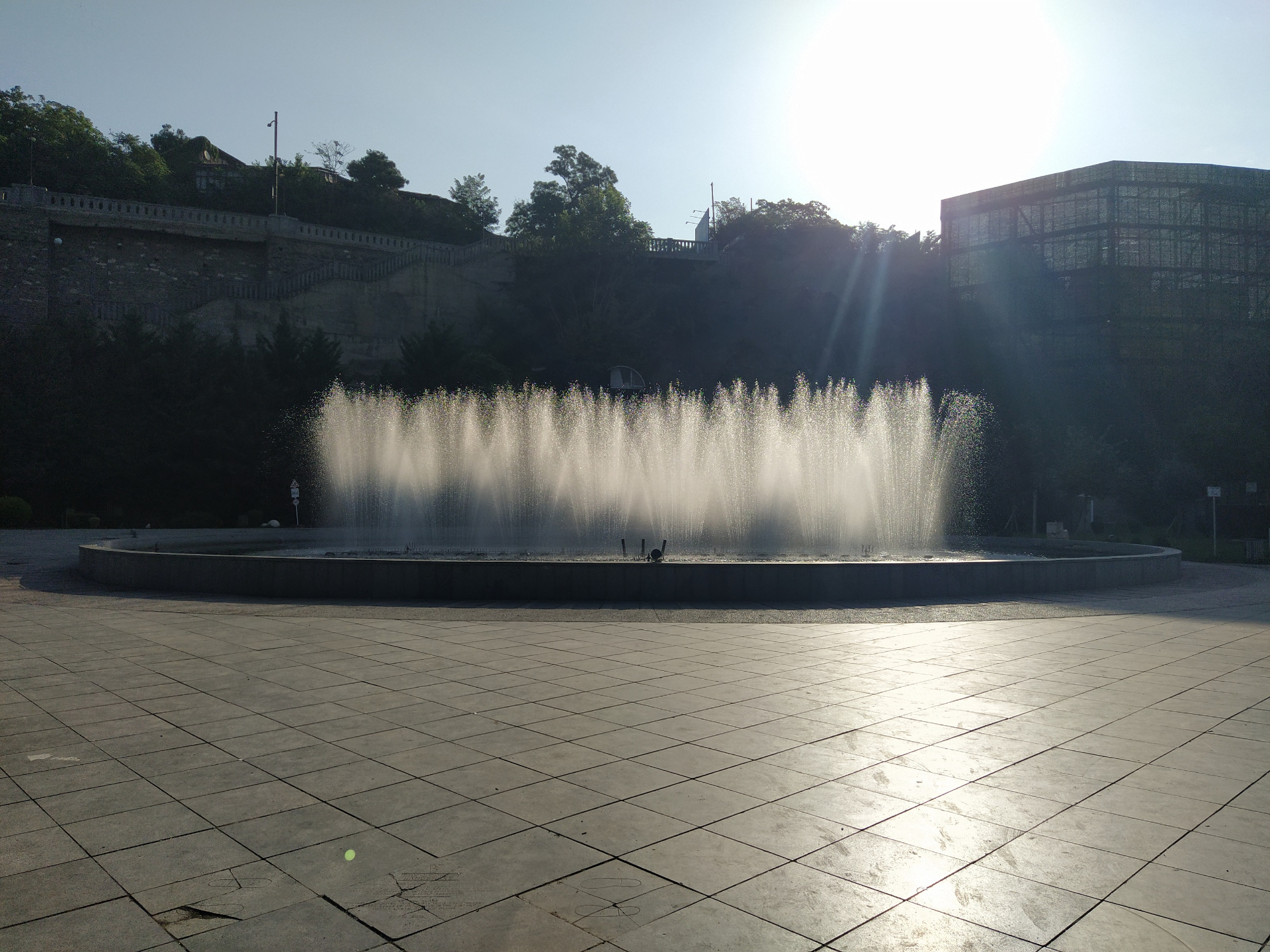 Прошли по мосту и попали в молодой парк Рике. Деревья там ещё невысокие, но их высадили и выхаживают так, что уже сейчас очевидно: там скоро будет очень красиво. Да собственно и нынче довольно уютно. Фонтаны,