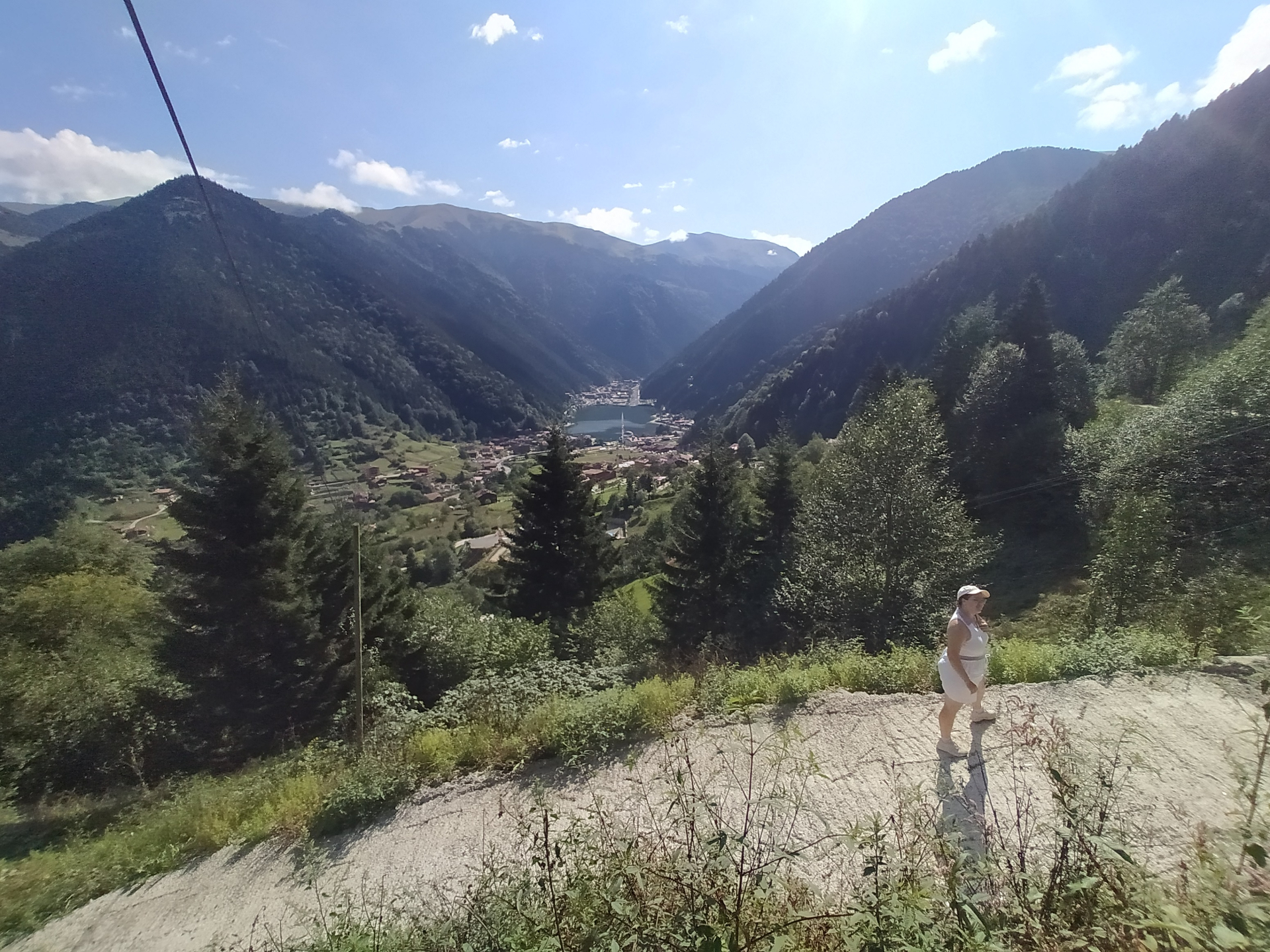 Озеро Узунгёль (в переводе с турецкого «длинное озеро») – на самом деле чрезвычайно живописное. Находится в обрамлении высоких, покрытых густыми непроходимыми хвойными лесами гор. Сначала мы подъехали на смотровую площадку, находящуюся на высоте 200 метров над озером. Оттуда открывались самые роскошные виды на Узунгёль и горы.