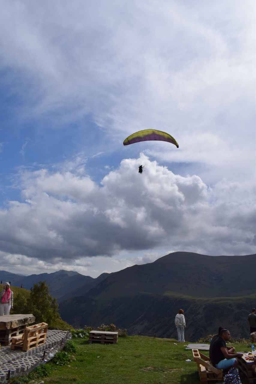 и узкие ущелья, по которым текут быстрые горные ручьи. Прямо под обрывом маленькое изящное круглое озерцо с зеленоватой водой. Зрелище просто фантастичное! А в пяти километрах отсюда на западе находится Южная Осетия, один из отторгнутых у Грузии регионов. За скромные 60 евро можно полетать над этой красотой на параплане (с инструктором, разумеется).