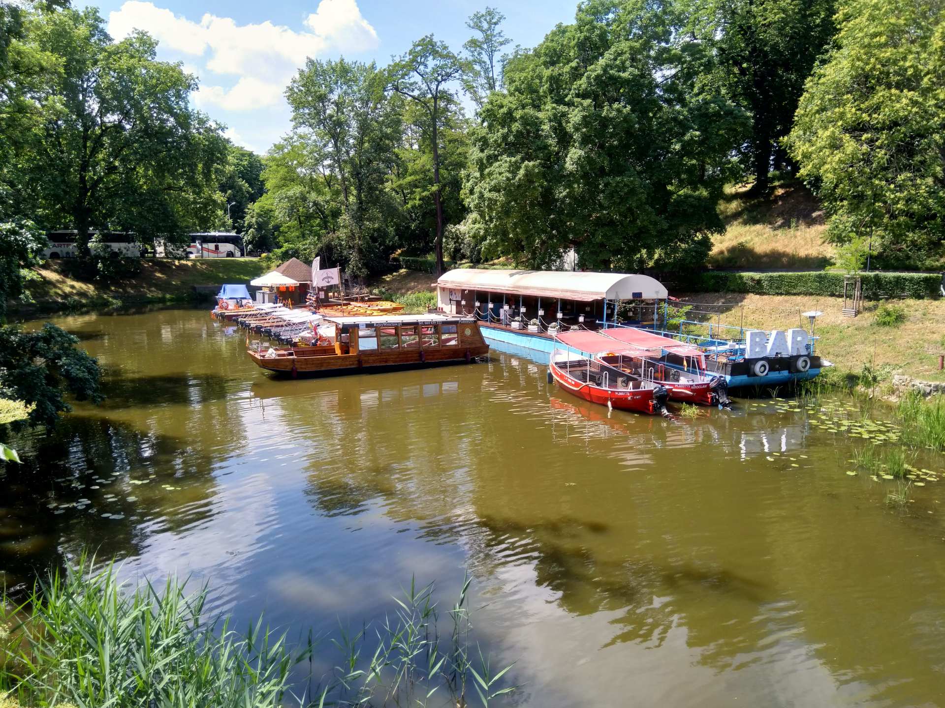 Шагая по набережной и не заметила, что ступаю уже не по тротуару, а снова по мостику. Настолько плавный переход, что и был сооружен для преодоления небольшого - скорее, большого препятствия; городского рва теперь прямо на туристической тропе. Когда-то ров был оборонным сооружением, куда отводились потоки Одры и Олавы. И служил не только оборонительным рубежом, но и транспортной магистралью вглубь города. Сегодня тут чудесный зеленый уголок с разноцветными лодочками.