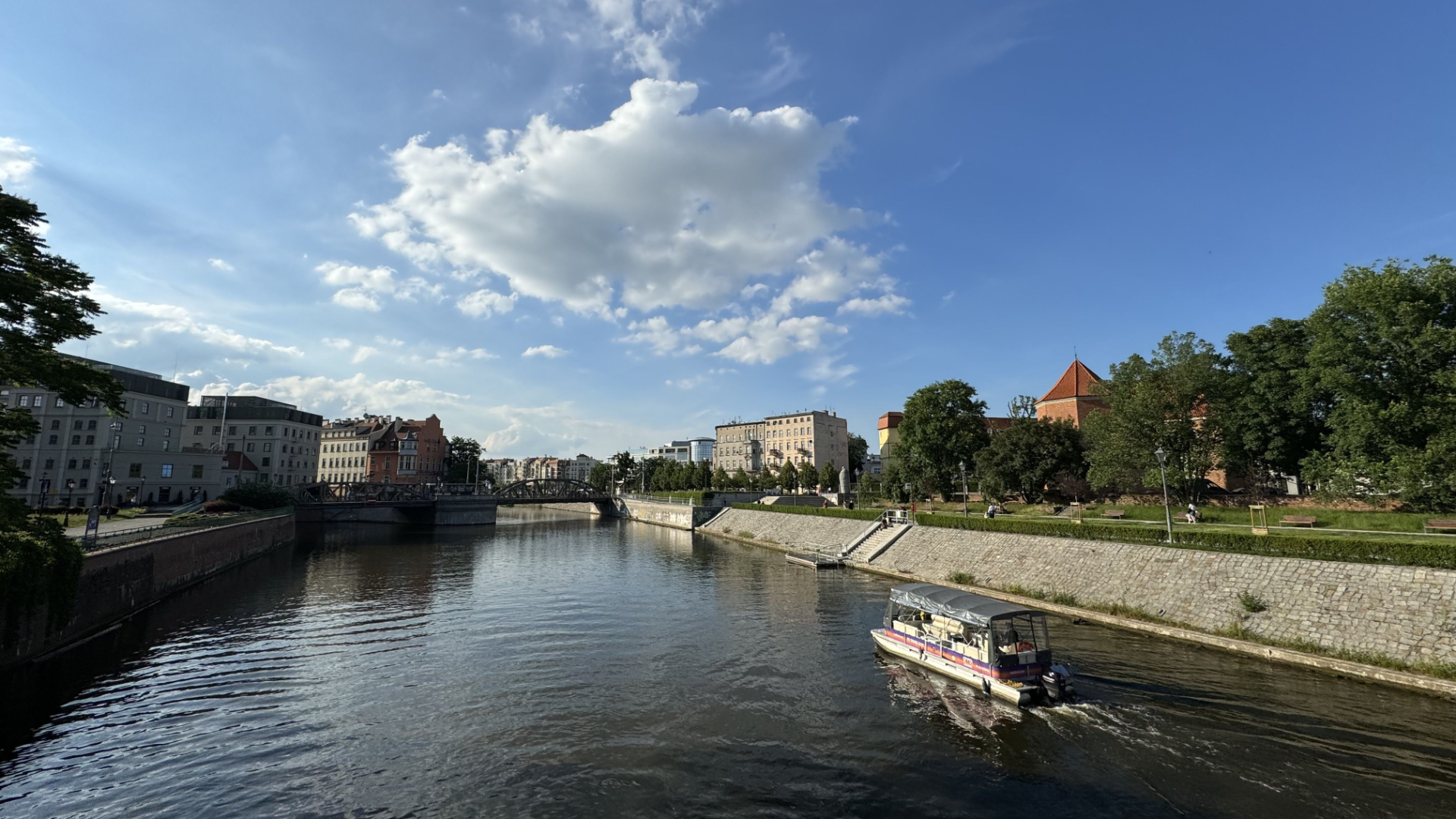 Без Одры не было бы Вроцлава. Город стоит у слияния четырех притоков реки в одну полноводную Одру, даже пяти притоков. С какой стороны лучше рассматривать город над рекой? Может, с воды? В городе свыше ста мостов, ведущих на 12-ть островов реки. По количеству мостов город уступает только 3-м европейским городам. С палубы парохода кажется, что он стоит на воде, как даже есть название - «польская Венеция».