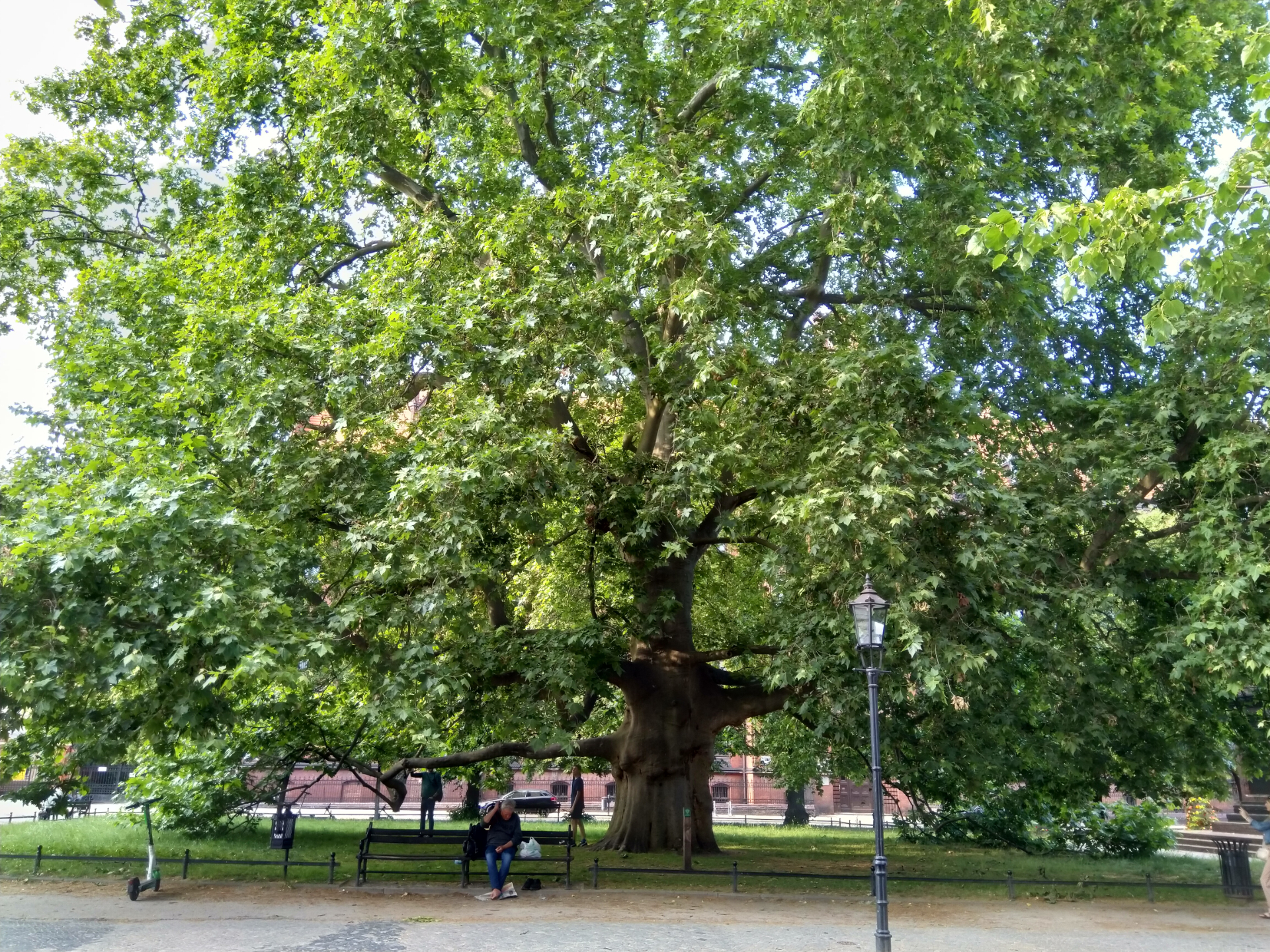 Тут растет знаменитое дерево-великан, которое окутано множеством легенд и мистических преданий. Средневековые рыцари и монахи часто приносили клятвы под этим деревом, клянясь верностью королю или Богу. Говорят, что те, кто нарушал свои клятвы, вскоре погибали при загадочных обстоятельствах. Прихожане оставляли в корнях дерева записочки с просьбами, которые при усердных молитвах исполнялись. В XIX веке дерево внезапно сбросило все листья в разгар лета. Это было воспринято как дурное предзнаменование, и вскоре город охватила чума. На самом деле дереву около 150-200 лет, но приятно же еще какие-то мифы Тумского острова вспомнить.