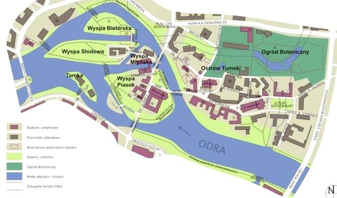 Острова во Вроцлаве на реке Одра находятся прямо в центре города. Остров Тумский, он же - Соборный остров, является историческим старым городом Вроцлава. До XIX столетия Ostrów Tumski был действительно островом, позже, по личному распоряжению Бонапарта засыпали один из рукавов р.Одры, он стал полуостровом. Название города - Вортицлава и Вратислава, появилось около 900 года, как название славянского поселения с рынком-торжищем. Оно находилось на острове вблизи места слияния трёх притоков Одры, и стало ядром для дальнейшего расширения поселения. В 1000-ом году был построен замок на Соборном острове, примерно на месте сегодняшней церкви Св.Мартина. Внутри замка построили собор, а вокруг замка образовался маленький город, в котором жили около 1000 человек.