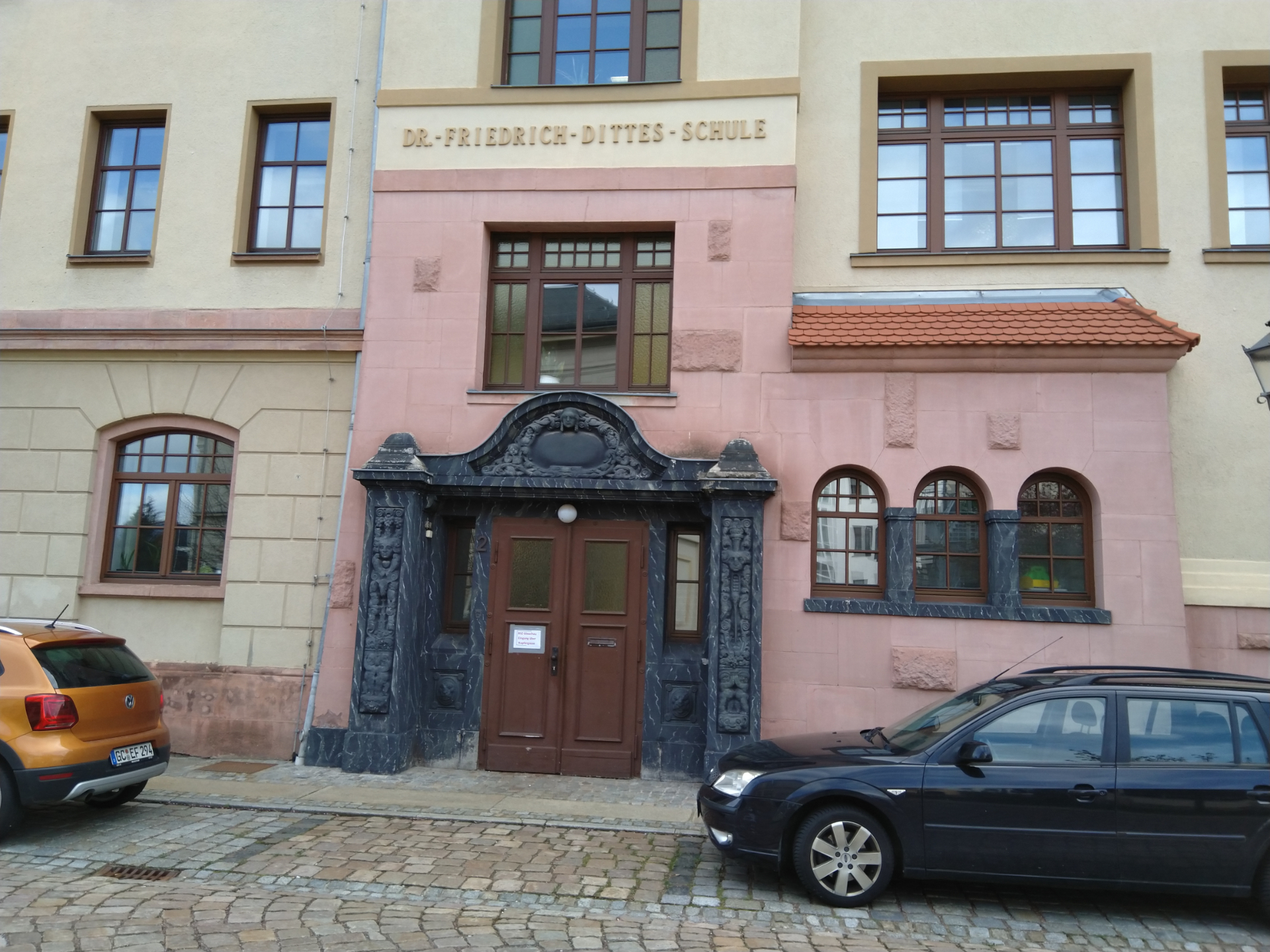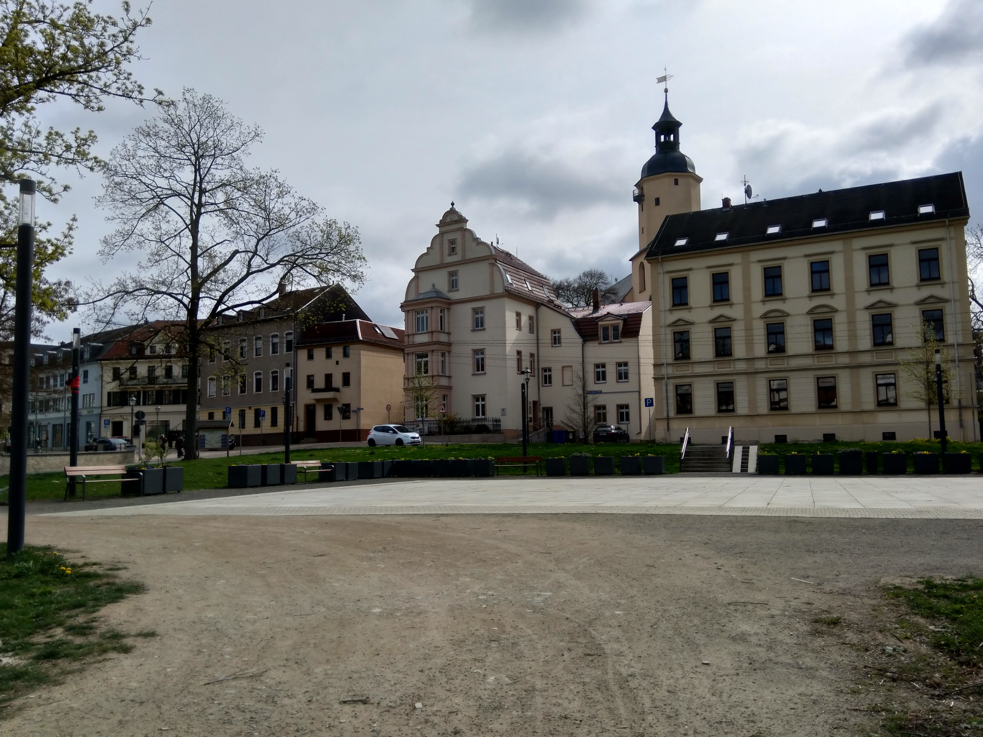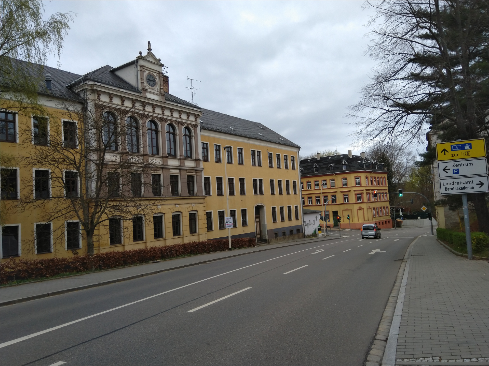 Наверное, в этом месте в конце 19 века был административный центр города, потому тут здание школы Короля Фридриха-Августа -die König-Fridrich-August-Schule, построенной в 1898 г. В ней действовала объединённая техническая и торговая школа, которая была известна далеко за пределами города. Готовила квалифицированных мастеров на производства местных богатеев.