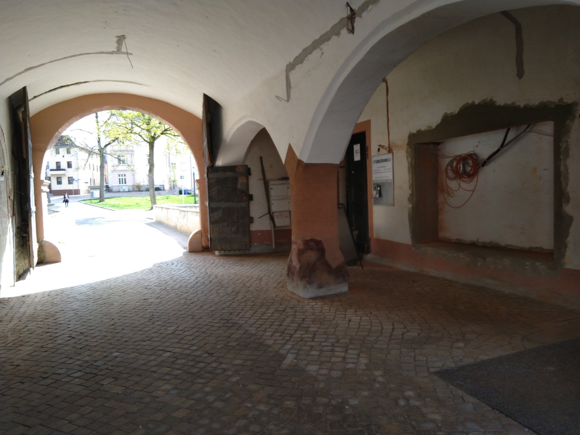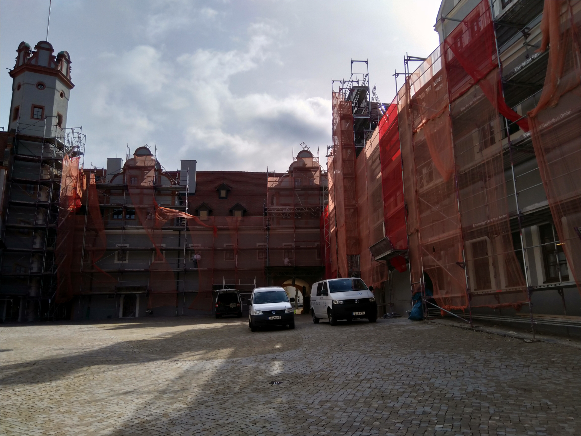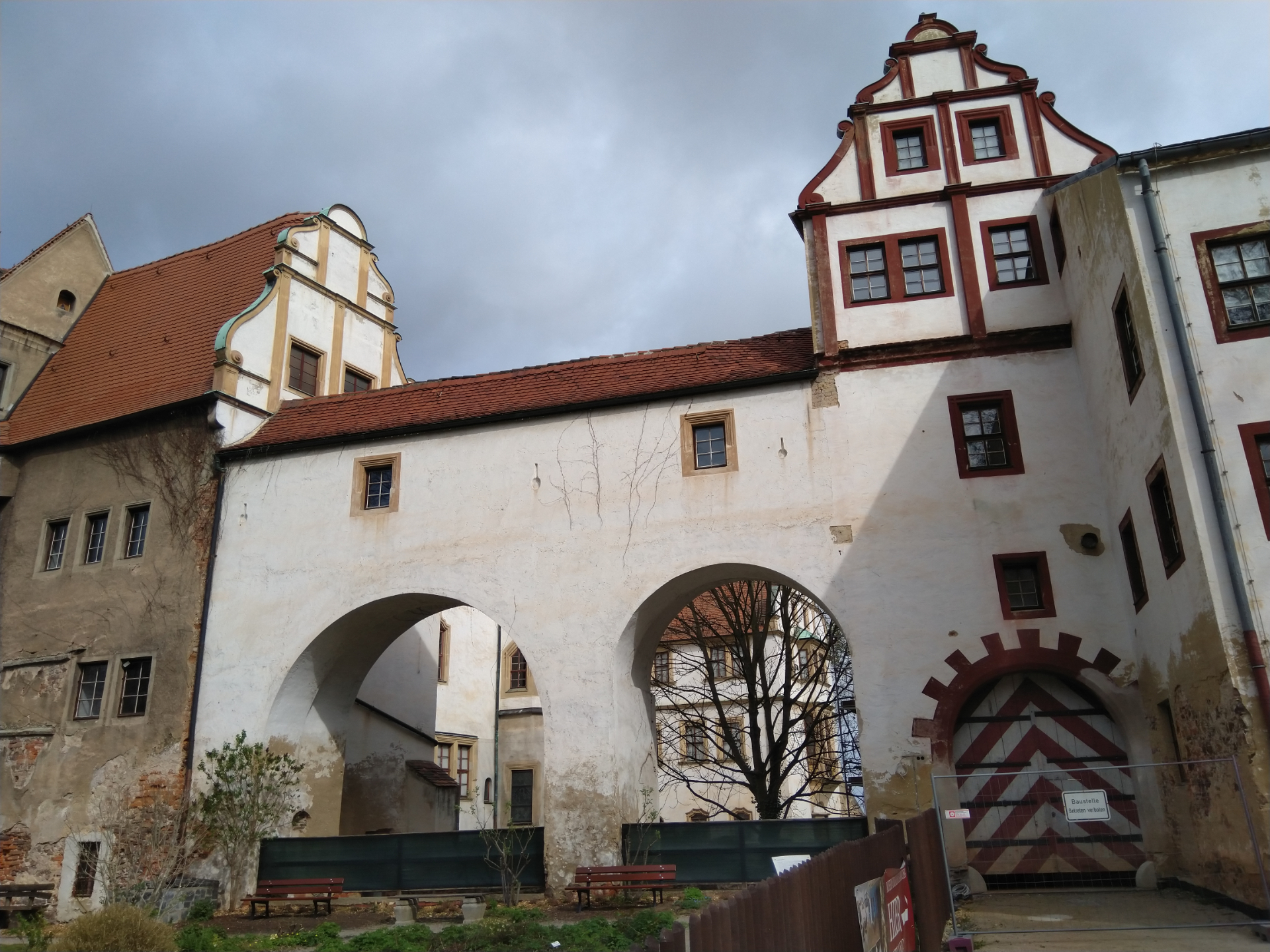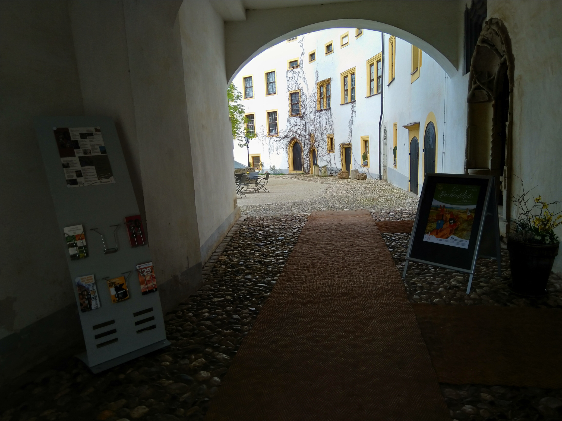 За проходом Главный двор – Haupthof. С внутренней стороны украшен ренессансными аркадами и служит проходным, связующим звеном между другими частями замка. Замок с двумя дворами особенность ренессансной архитектуры и его функции, как оборонной крепости, так и аристократической резиденции.