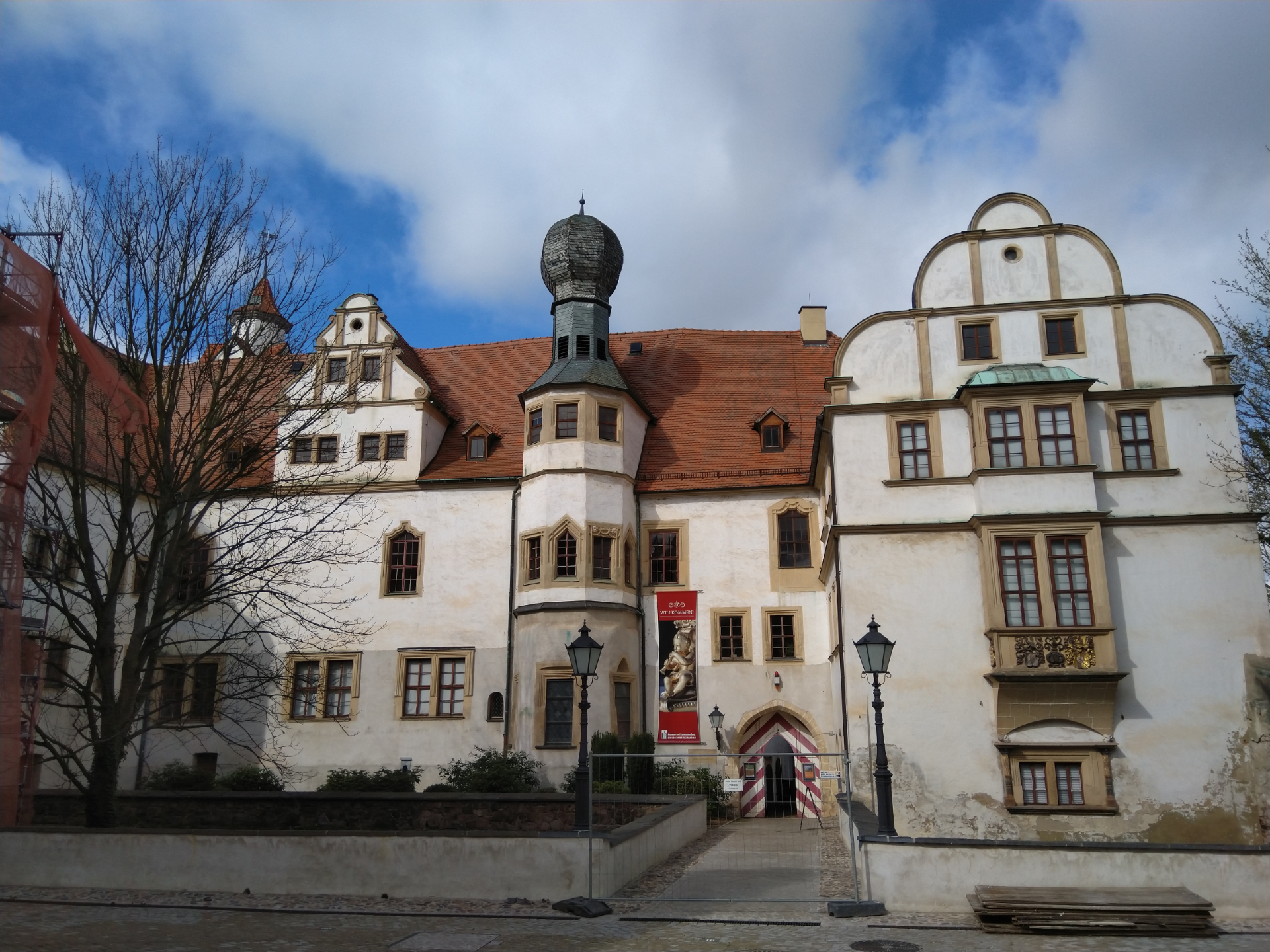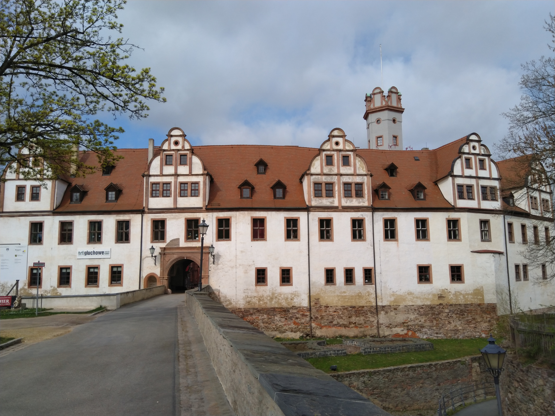 Дорога вглубь Германии после Польши вела через небольшой город Глаухау. На старосербском название: «Глухов» - gluch, по-русски глушь. И проезжая по улочкам даже центральной части, видели все те же бюргерские домики, что везде в Германии. Мол, что можно еще в этой деревушке увидеть, 25 тысяч населения для Германии совсем маленький городок. Пока не оказались рядом с Марктплац и за стоящими «каре» зданиями, увидели… большущий замок. Неожиданно было увидеть королевское сооружение в столь небольшом населенном пункте. Настолько гордятся им, что помещен на герб города.