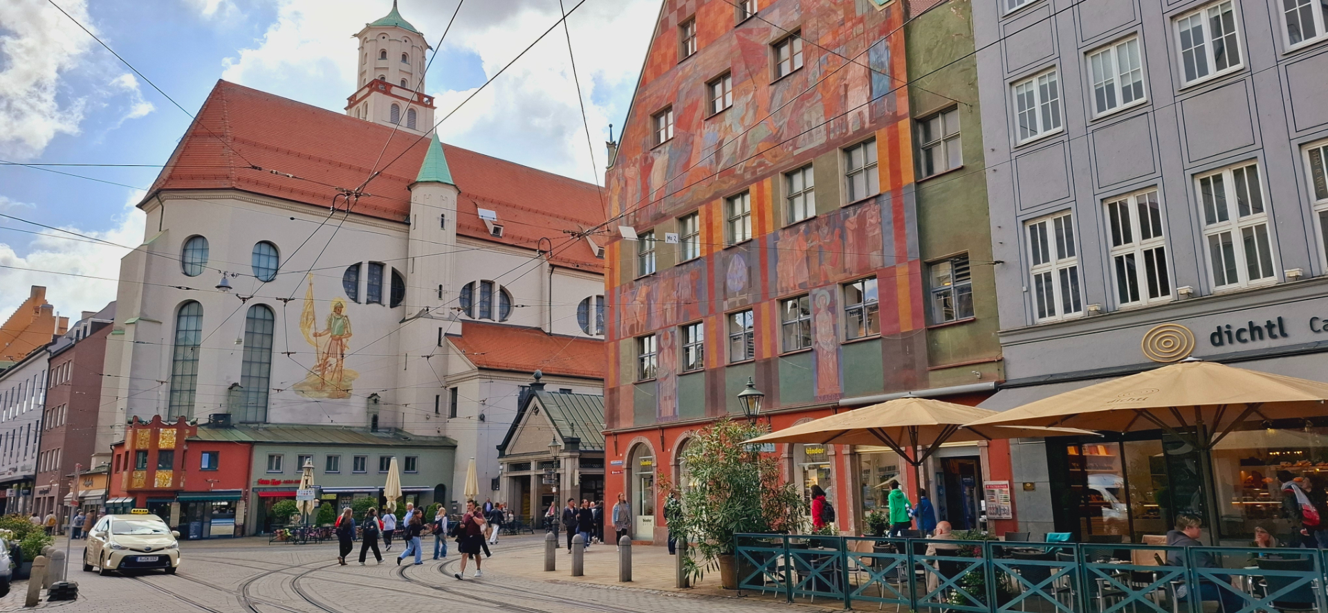 Аугсбург единственный город в Германии, имеющий свой официальный праздник - Augsburg Peace Festival. «День мира» 8 августа 1629 года - день начала притеснений протестантов города, которые продолжались 30 лет, до так называемого «Вестфальцевского мира» - Peace of Westphalia, заключенного в 1648 году между католическими и лютеранскими приходами. Аугсбург интересен своей историей, но слишком современно восстановлены здания. Целостность создаваемой веками городской среды утрачена, скорее нарядный новый город получился. После поездки лично мне стало понятно, почему в соседний Нюрнберг миллионы туристов в год едут, а не в Аугсбург.