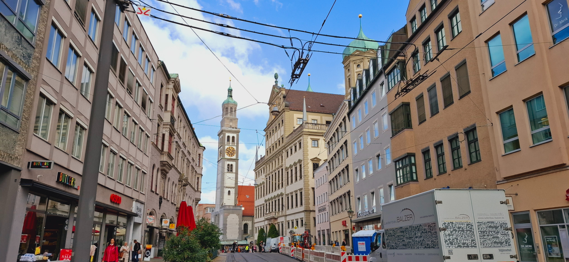От райского садика дальше поход по городу. Главная магистраль города – Максимилианштрассе, начинается от главной площади с Ратушей. По тропе, тянущейся с севера на юг через центр Аугсбурга, ходили-ездили еще со времен римлян. Когда-то соединенный с Вероной древней римской дорогой Виа Клавдия, выгодное расположение Аугсбурга сделало его центром торговли.