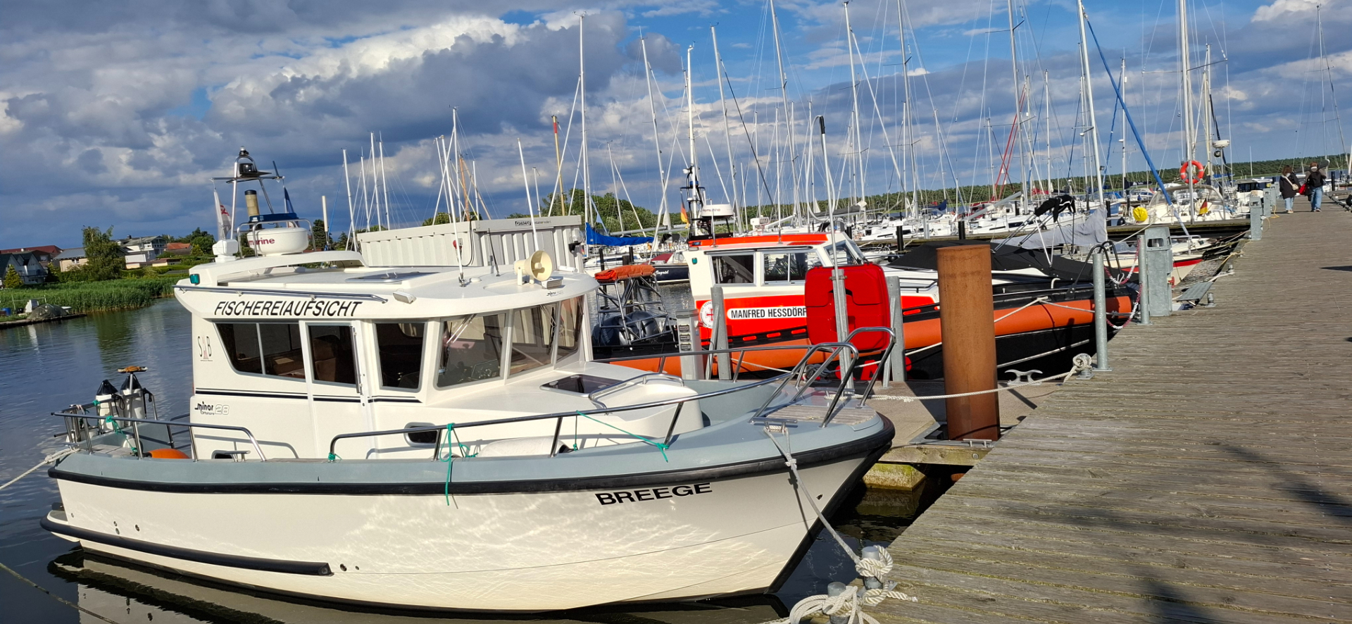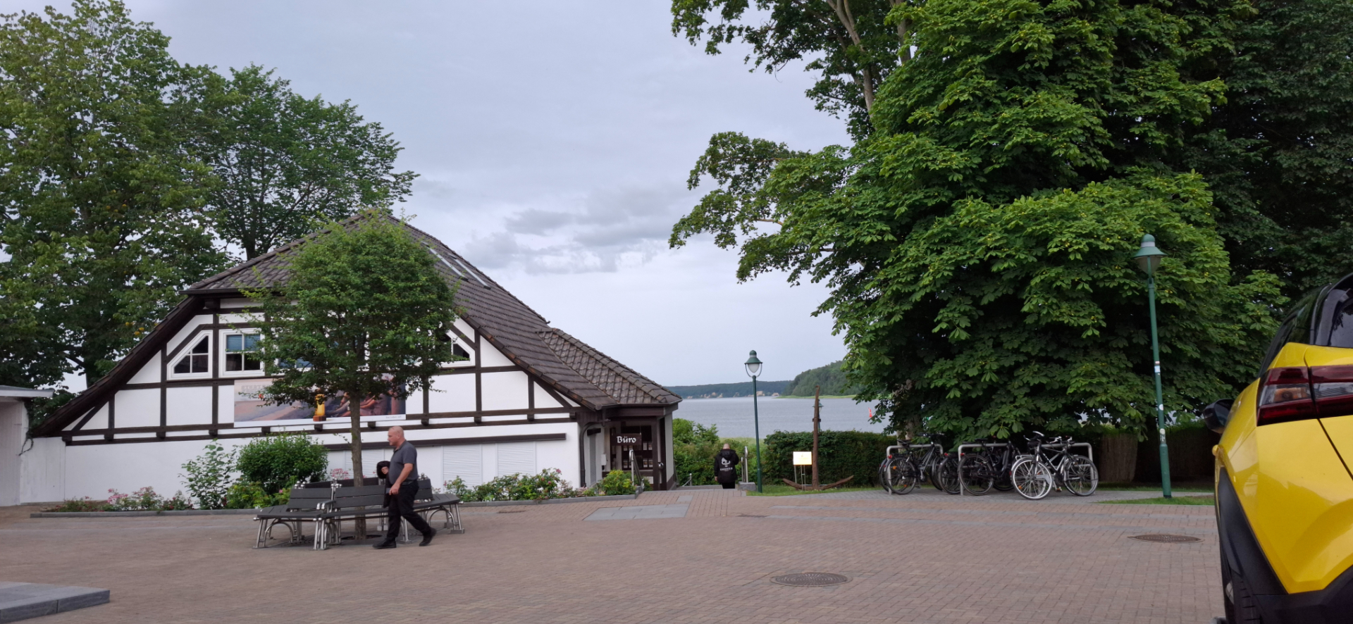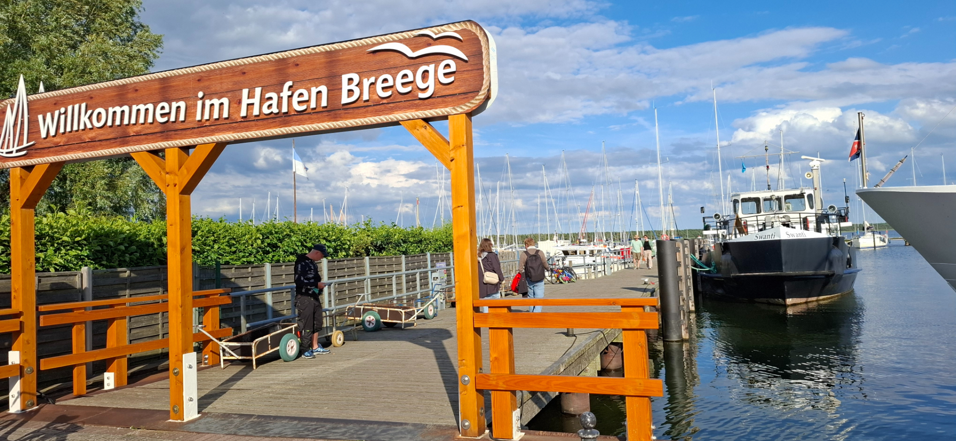 Курортные поселки о.Рюген имеют развитую инфраструктуру, не только ресторанные, но и культурные заведения для досуга. В некоторых поселках и городках есть театры, проводятся вернисажи, фестивали, даже Замок Штольпе имеется. В выбранном нами поселке Брееге нет театра, зато на противоположном берегу от пляжей с курортниками, есть свой порт. Место выбрали под него из-за удобного расположения в тихом месте между полуостровами Виттов и Ясмунд. Порт небольшой, но есть на площади перед ним здание администрации и управляющих организаций, все как у больших.
