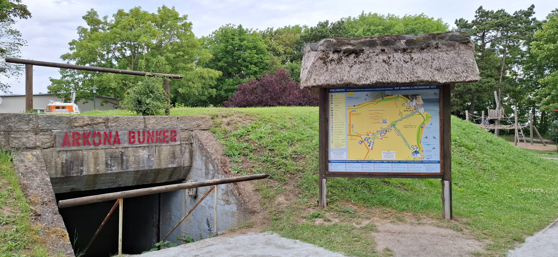 О прошедших временах напоминают расположенные неподалеку бункеры времен нацизма, складские помещения для хранения оружия и боеприпасов. Один из крупнейших бункеров был штабом системы воздушного наблюдения Вермахта. Их выезды-выходы построены на возвышенности, что давало отличный обзор моря, позволяя контролировать возможные вторжения с Балтийского моря. Мыс Аркона был важным пунктом для радиолокационных систем обнаружения нападений с воздуха.