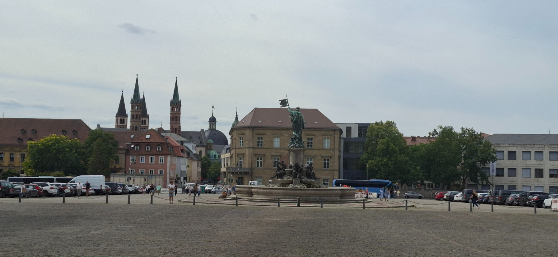 Сначала пересекла исторический центр в желании попасть в крепость Мариенберг. Полученные в информбюро вокзала сведения, что есть автобусик до крепости, мне не помогли. Прождала много времени на остановке и пошла пешком, так как из интернета знала, что он находится сразу за мостом в центре города. И мне даже дорогу не пришлось спрашивать, толпы туристов, сами как река, текут все к Майну. По пути уже фотографировала храмы на каждом шагу, но с толком, с чувством разглядела их после возвращения из крепости.