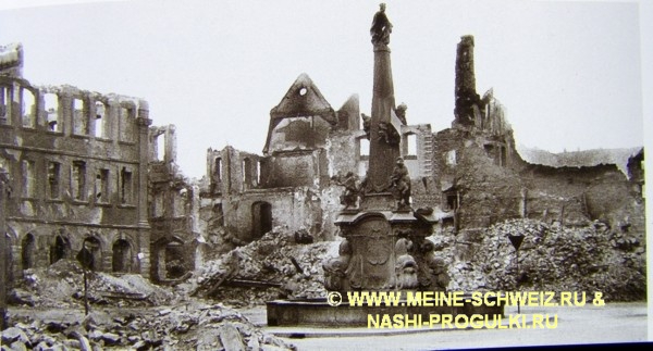 Доехав с вокзала в центр города, оказалась под множеством шпилей, башен, куполов церквей, что создают в небе «противо-облаковое» покрывало. Перед поездкой читала, что селение очень сильно разрушено в конце войны британскими и американскими бомбардировками.