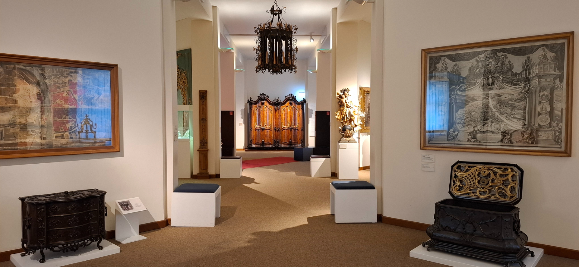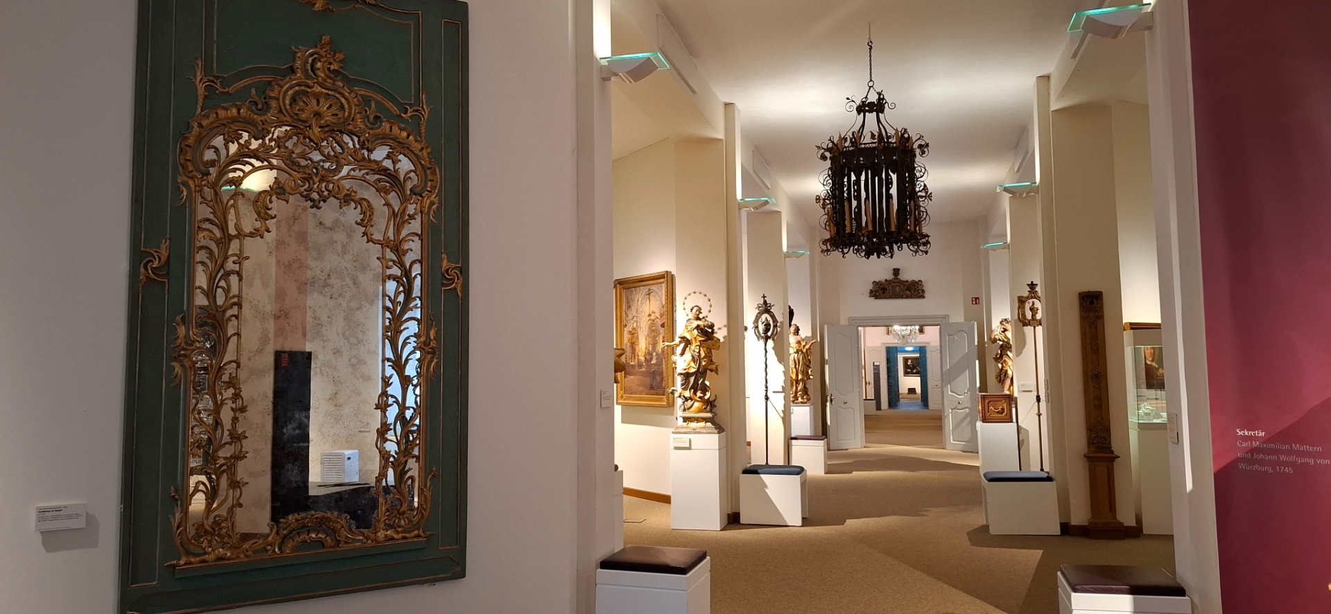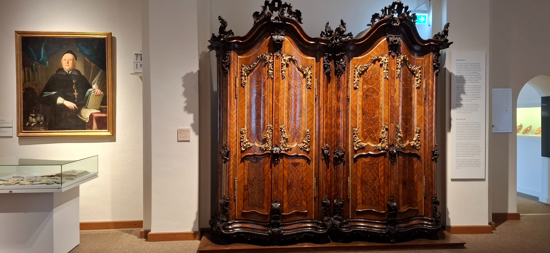 В залах, особенно служивших епископам личными покоями или для торжественных случаев, воссоздано - насколько возможно, их прежний быт и интерьер. Реконструированное помещение на месте комнат, где обитал епископ Джулиус Эчтер. Тут предметы, мебель не подлинные, но относящиеся в тому периоду.