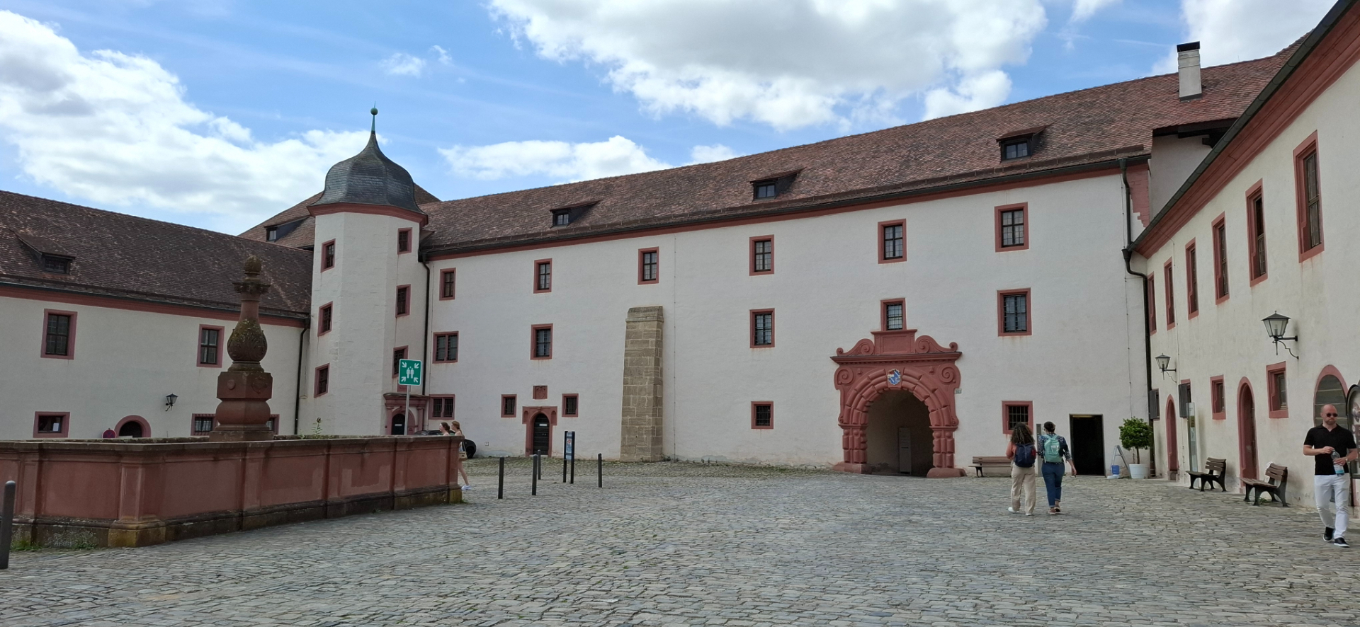Из трех дворов - средний между ними, «Передний двор» -Vorderer Schlosshof, с большой площадью посередине и проходами-воротами в соседние дворы.