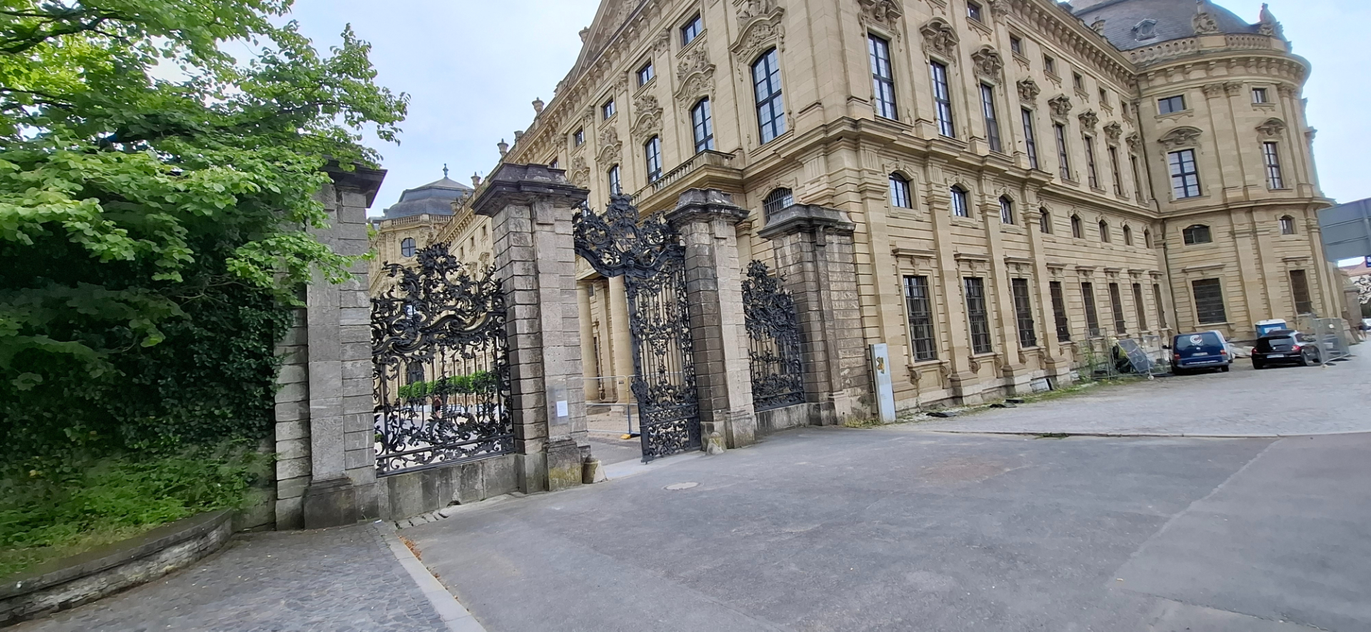 Перед дворцом на площади стоит фонтан «Франкония» 1896 г., выполненный Фердинандом фон Миллером по заказу принца-регента Луитпольда Баварского, выразившего таким подарком почтение к месту своего рождения. Чашу фонтана украшают три скульптурные фигуры знаменитых жителей города: миннезингера Вальтера фон дер Фогельвайде, скульптора Тильмана Рименшнайдера и художника Маттиаса Грюневальда.