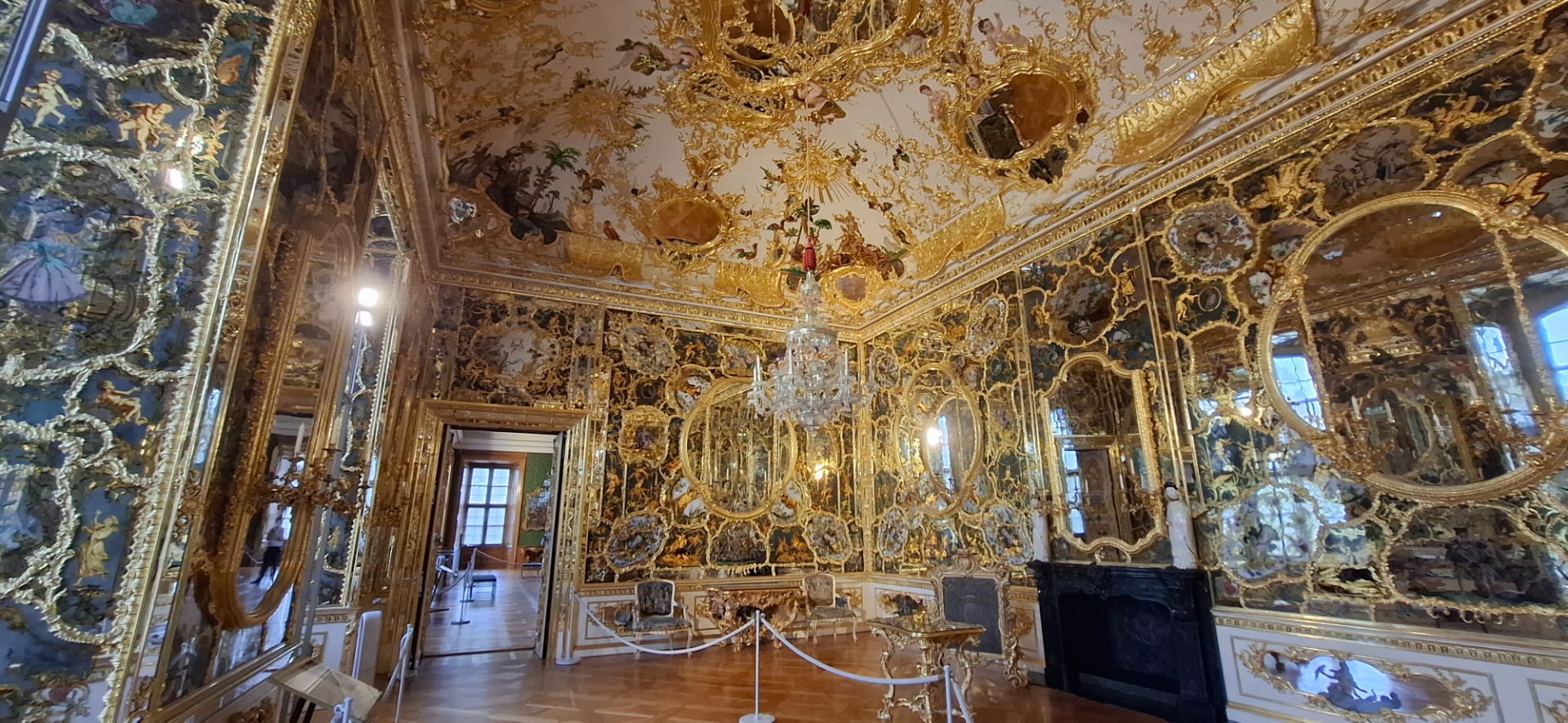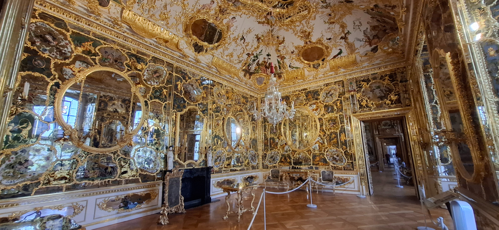 Только в Германии сохранилось все многообразие этой игры, когда кусочки зеркал вкраплялись в лепной декор потолка, стен, картинных рам, вспыхивая вдруг от солнечных лучей или огня свечей.