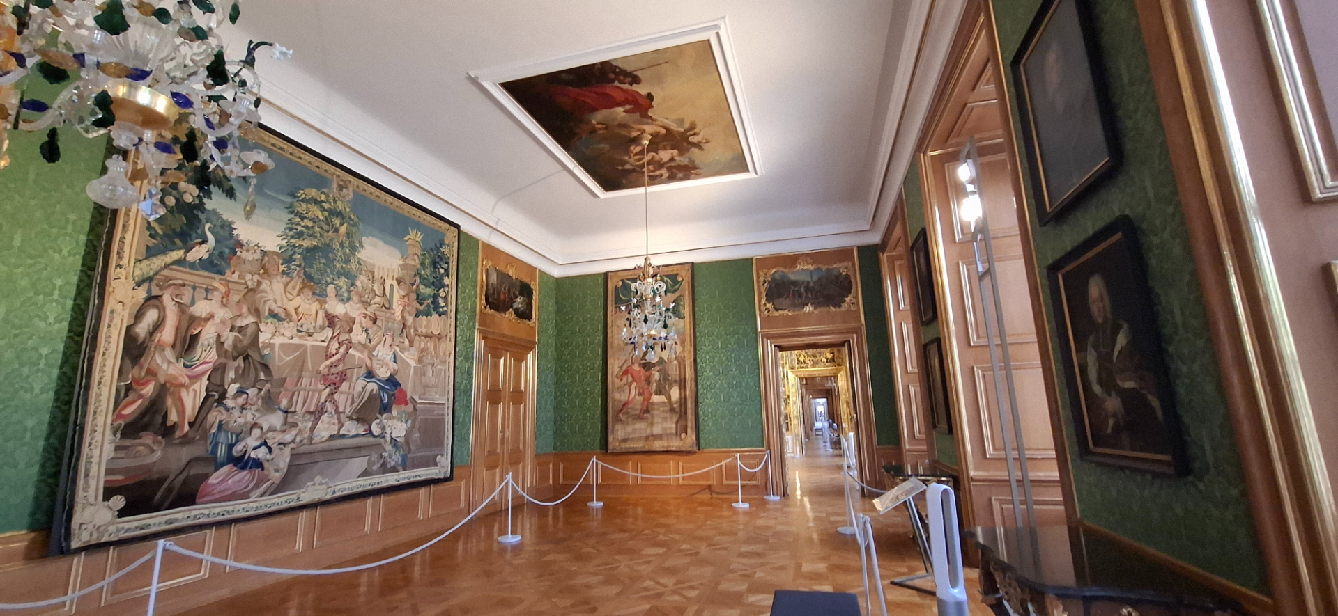 В угловом Зеленом кабинете в зеленом интерьере доминируют рисунки, обрамленные декоративными элементами соответствующего цвета с золотыми орнаментами.