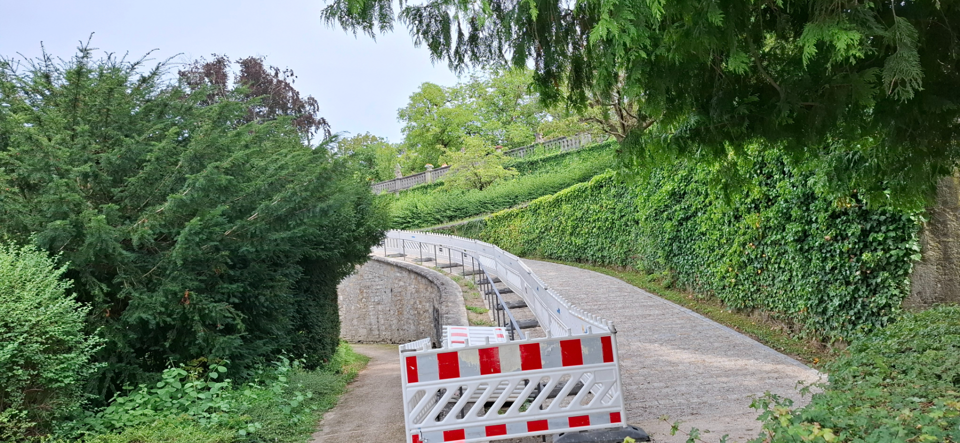 Сразу за партером с авкадами начинаются террасы. Верхняя находится на одном уровне с бастионом, то есть на высоте бывшего крепостного вала. На верхнюю террасу можно попасть по боковым лестницам. Их перила и балюстрады были раньше украшены каменными вазами и скульптурами играющих детей. Сейчас ведутся ремонтные работы.